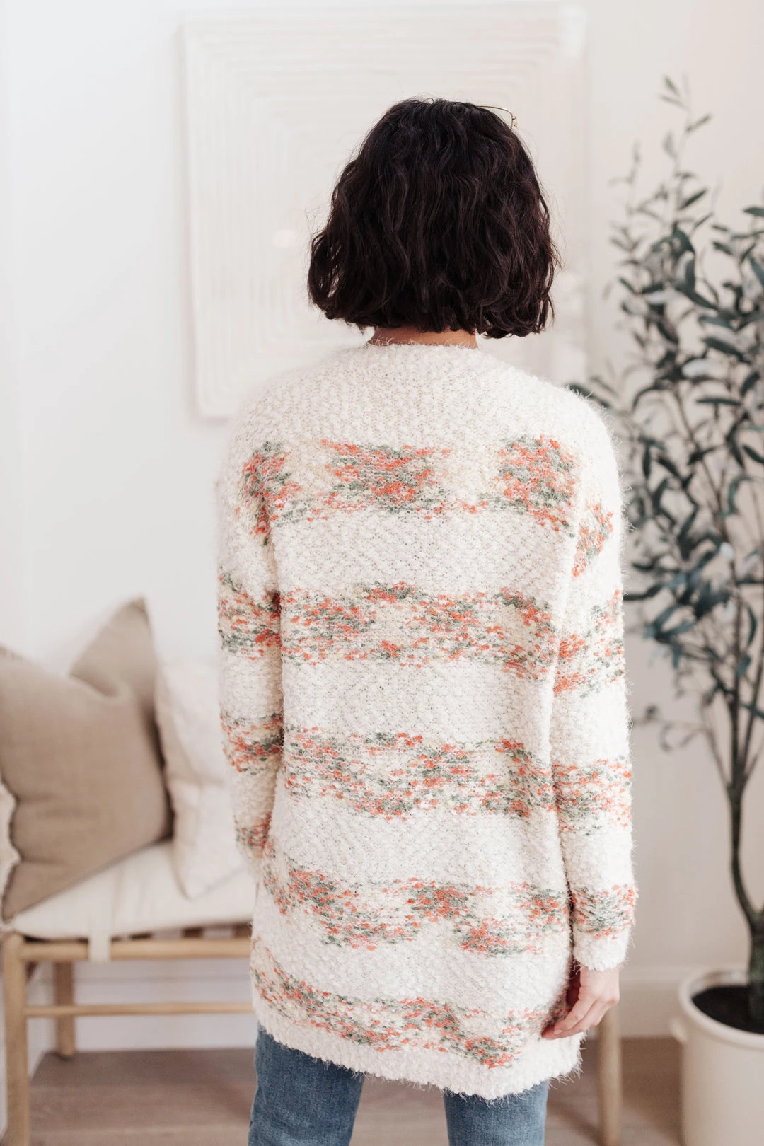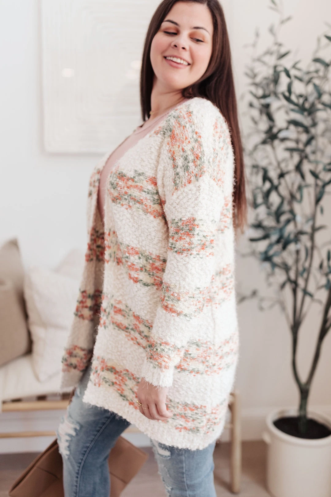 Keywords: Cardigan, Long Sleeve, Fuzzy, Speckle Color Block