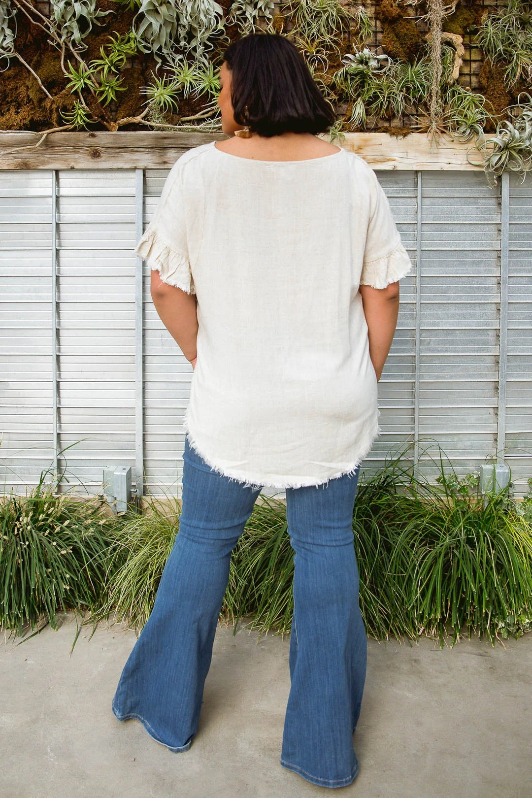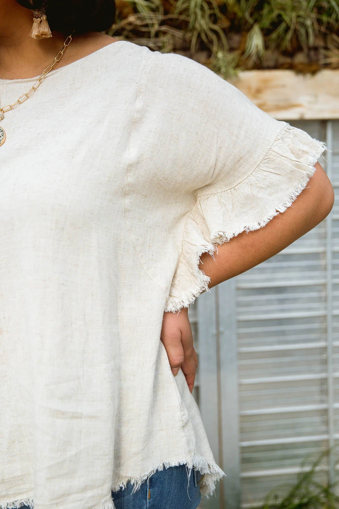 The Willa Linen Top is the perfect companion for traveling abroad, or just taking a trip to the cafe! A ruffled dolman sleeve, with a rounded, raw hem cut. Light and breezy feel across this top will leave you never wanting to take it off!