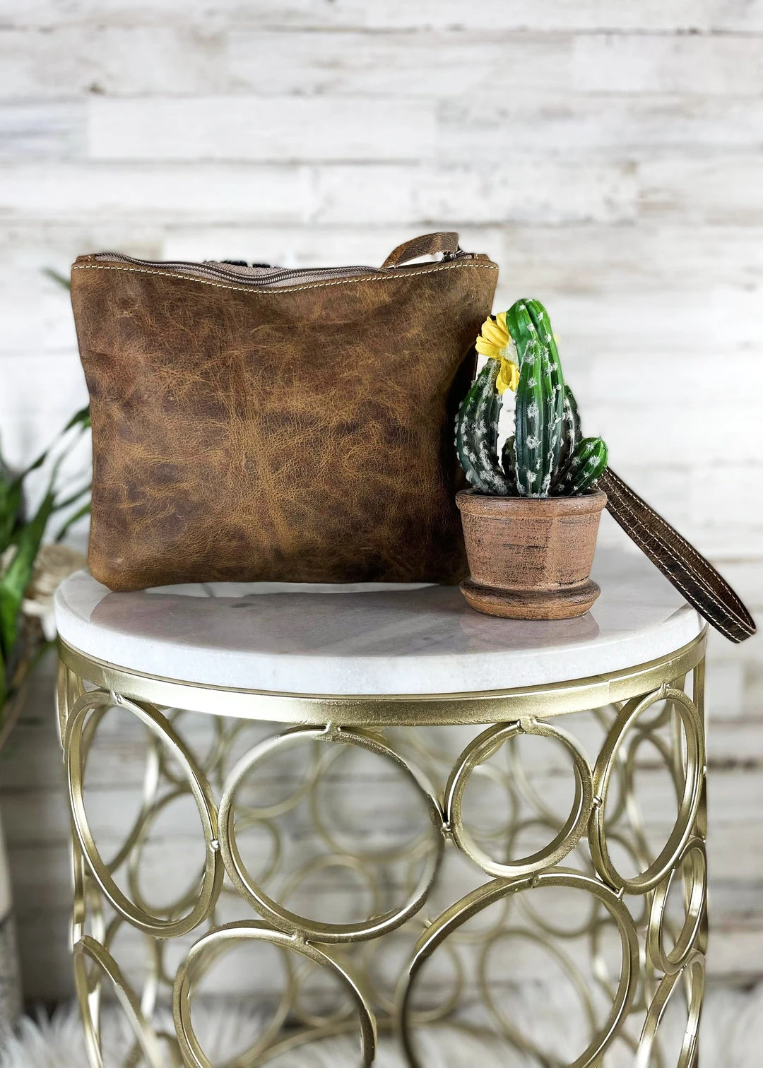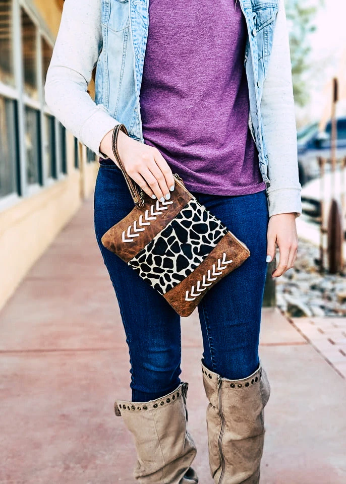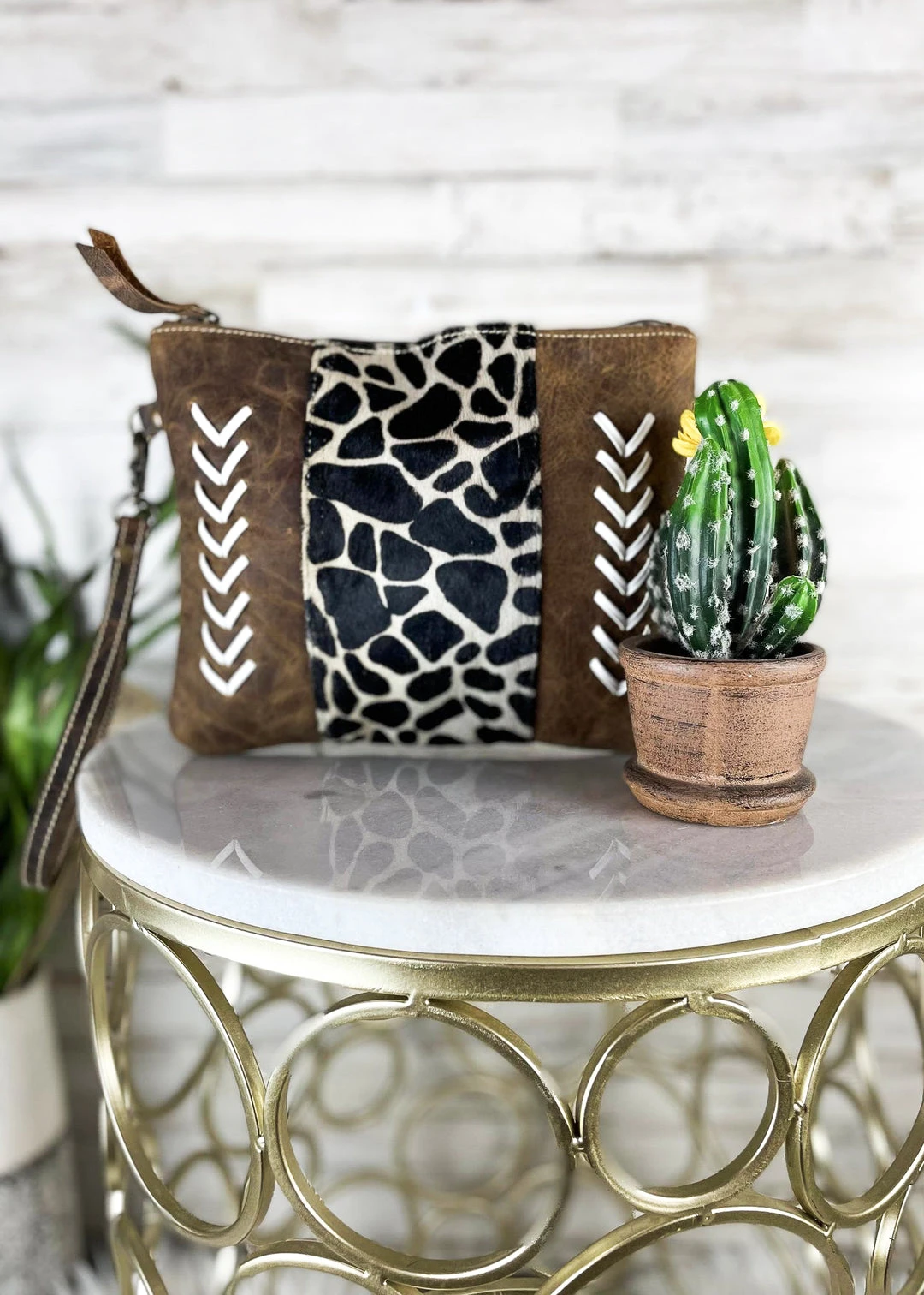 - Crafted with premium giraffe print leather, this wristlet pouch combines style and durability for everyday use.