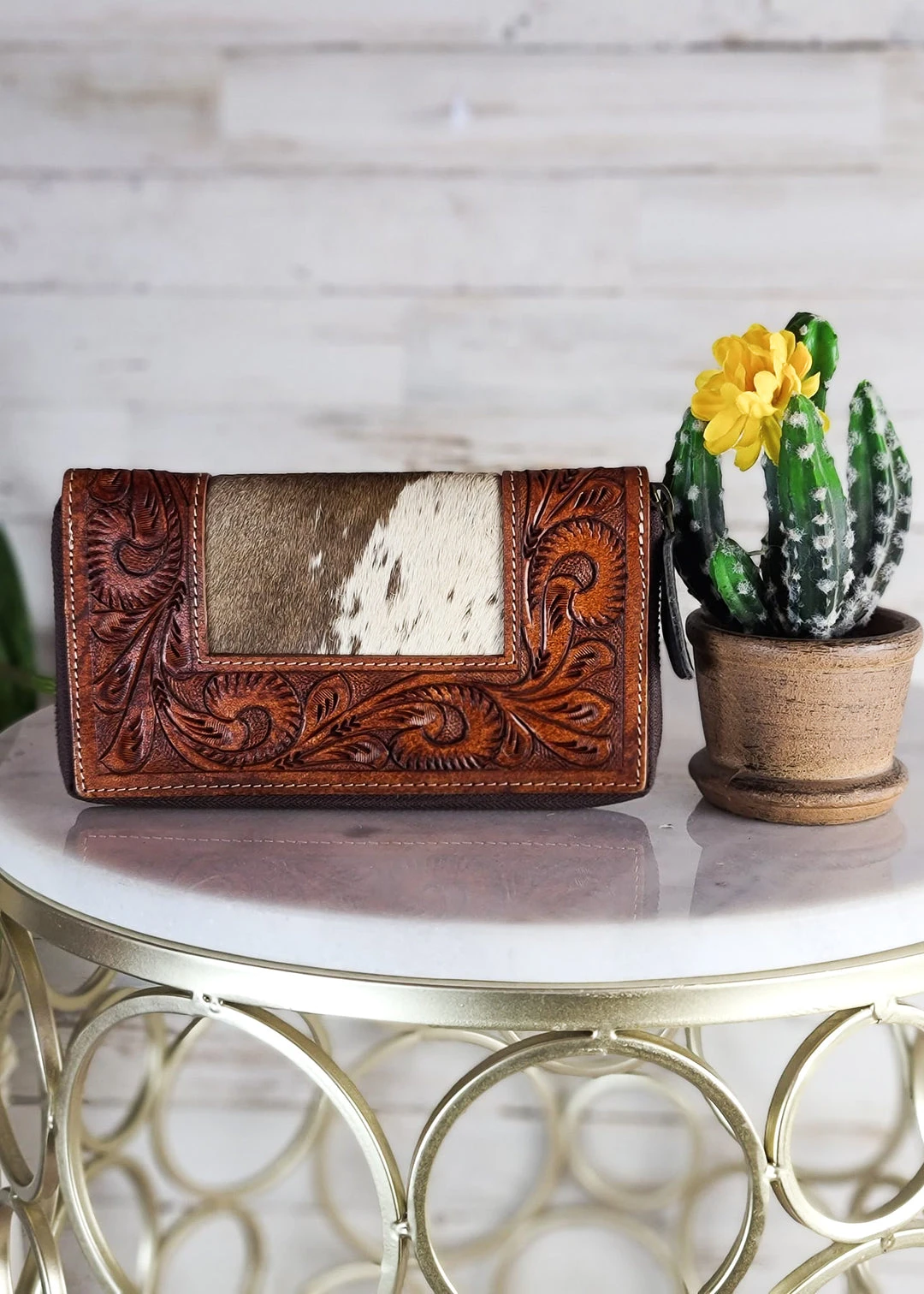 - Featuring a stylish tooled design, this wallet is not only functional but also a fashion statement that complements any outfit.