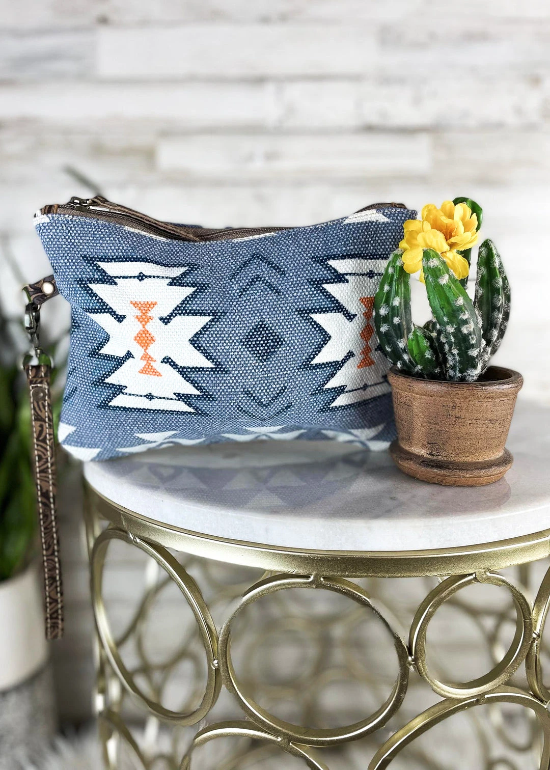 - Crafted with high-quality materials, the Hudson Blue Aztec Wristlet Pouch is durable and long-lasting. Itβs the perfect accessory for any occasion.