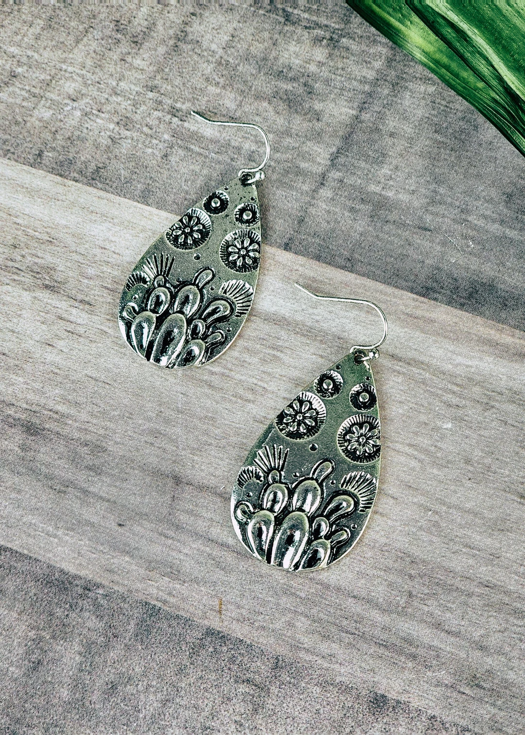 - Handmade with care, these Blue Tortoise Antique Silver Cactus Teardrop Earrings are a unique addition to your jewelry collection. Each earring features a beautiful teardrop design with a cactus motif, crafted from high-quality materials.