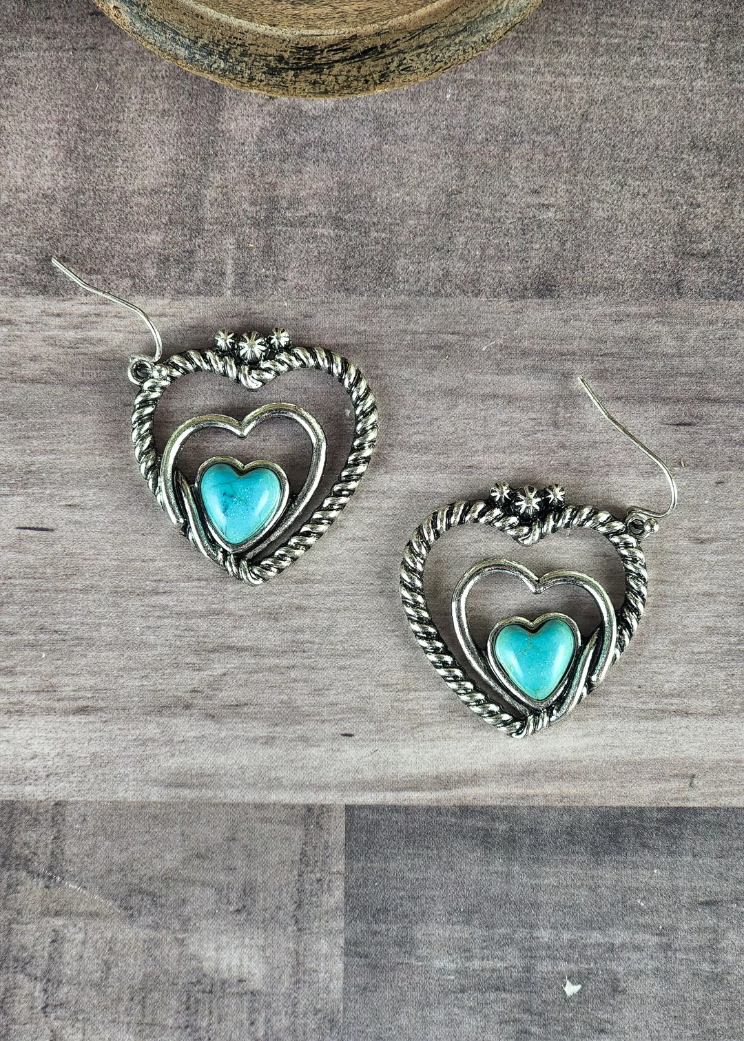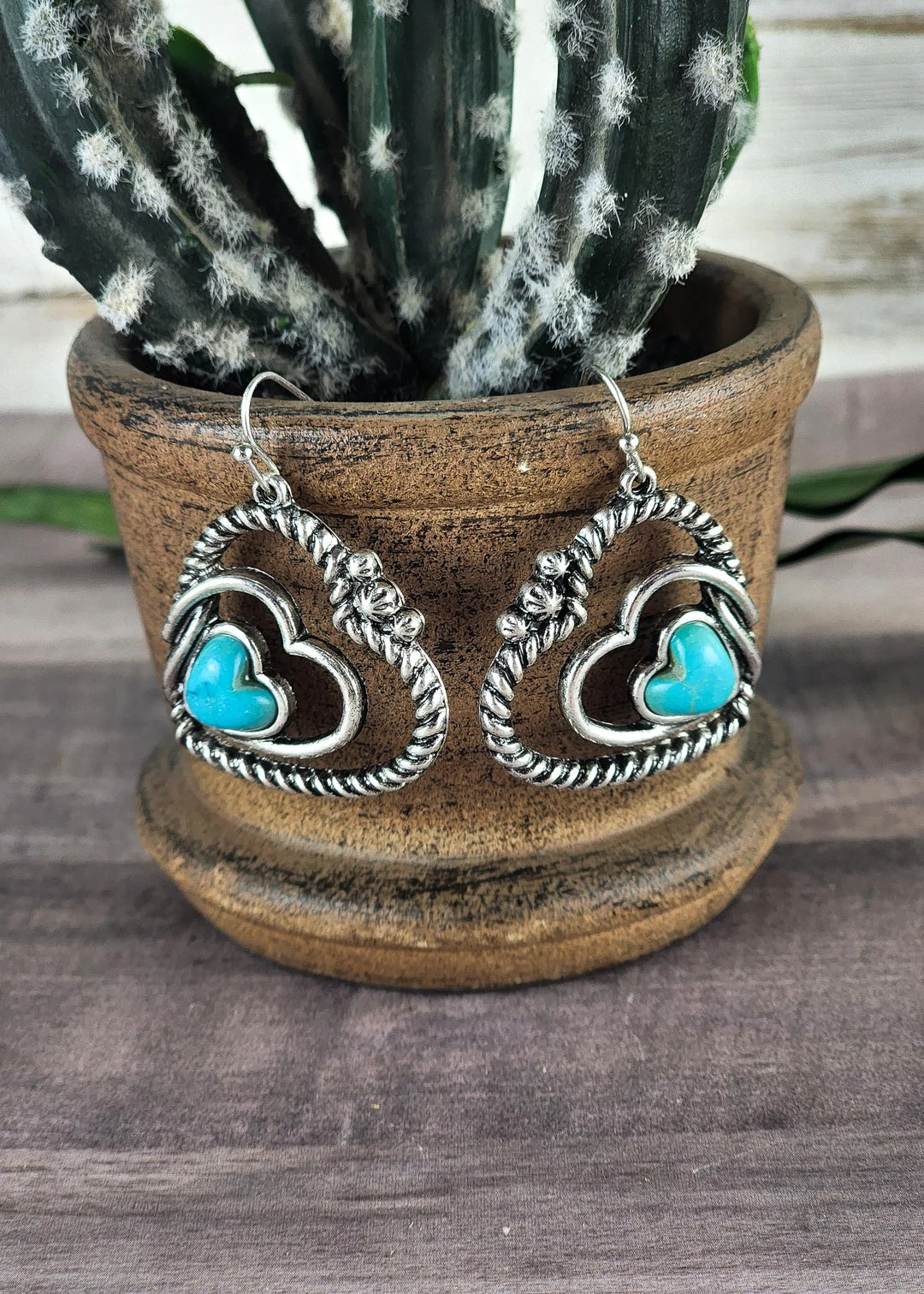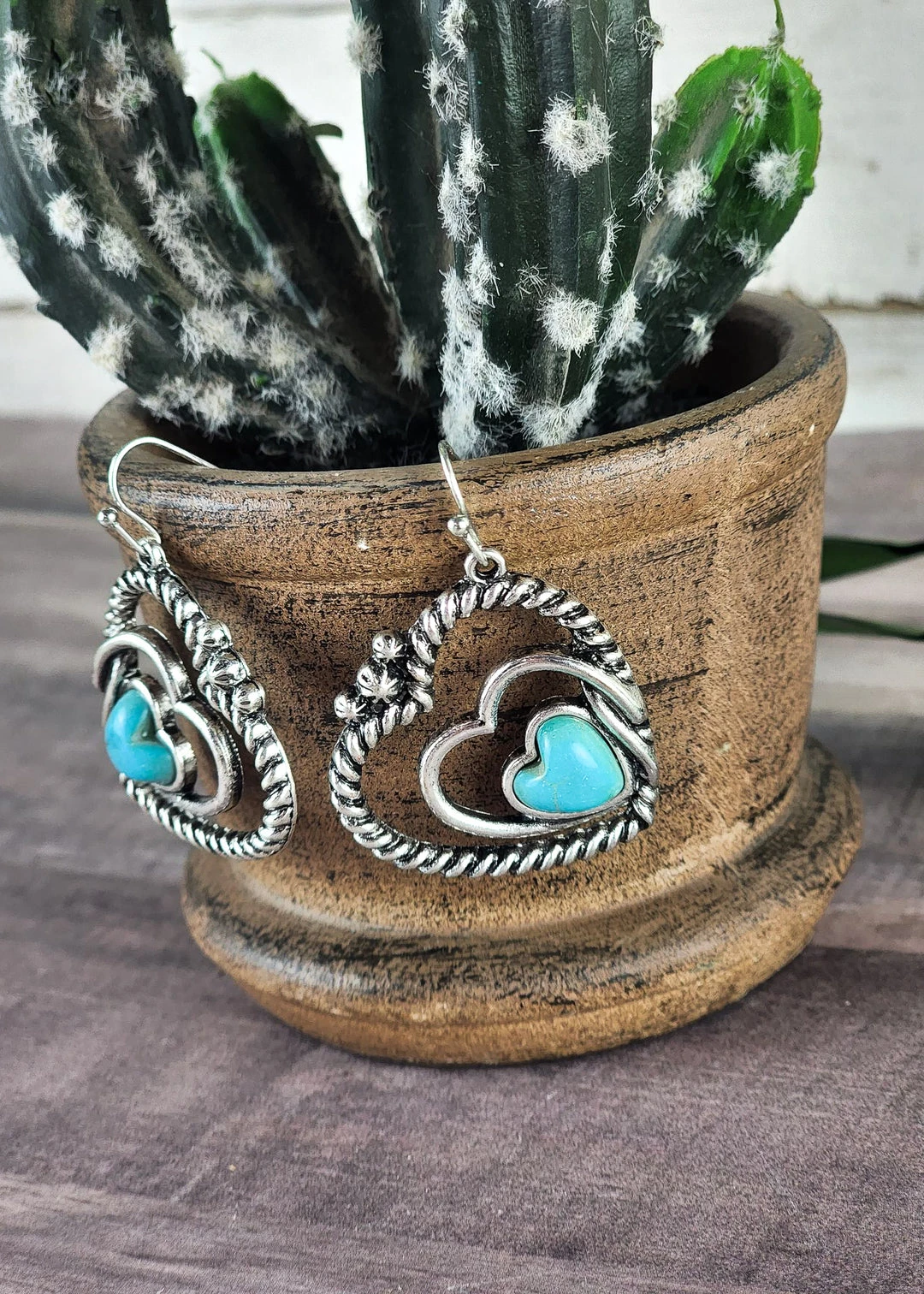 - Enhance your style with these stunning Blue Tortoise Jewelry Layered Heart Turquoise Dangle Earrings, featuring a unique and elegant design.