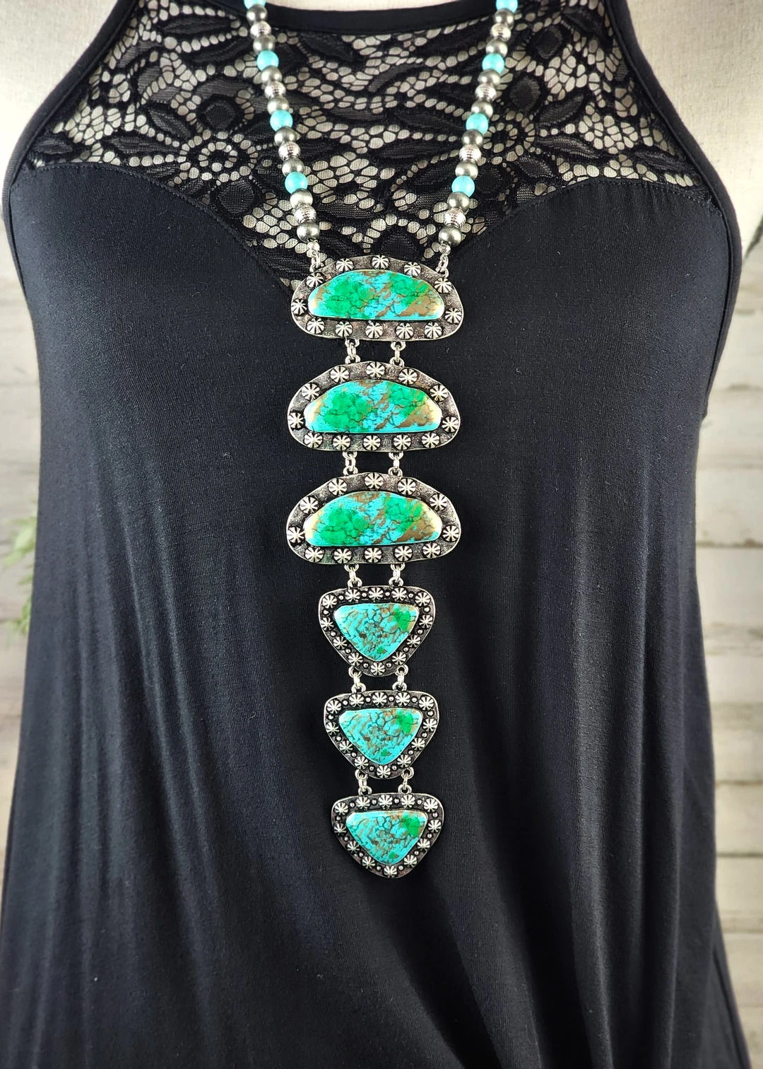 - Elevate your style with our Blue Tortoise Turquoise Brilliance Long Necklace, featuring a stunning turquoise stone set in a unique tortoise design.