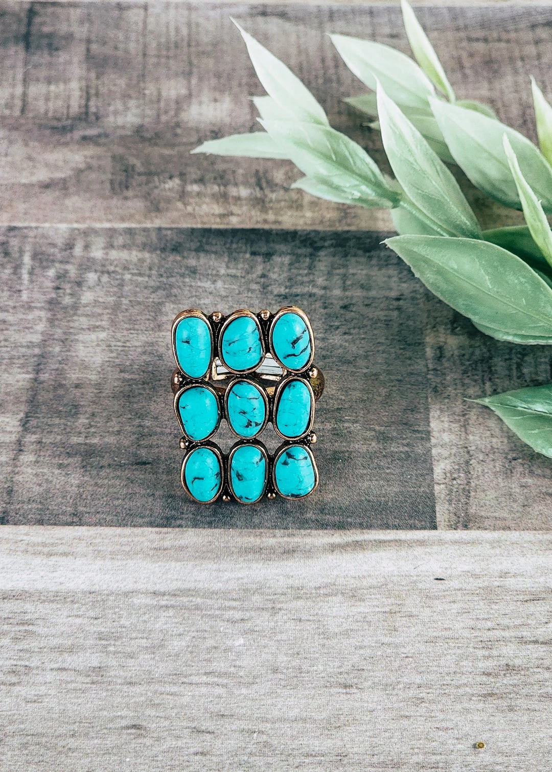 - Elegant Design: This Blue Tortoise Turquoise Rectangle Stretch Ring features a unique rectangular turquoise stone set in a blue tortoise pattern, offering a stylish and sophisticated look.