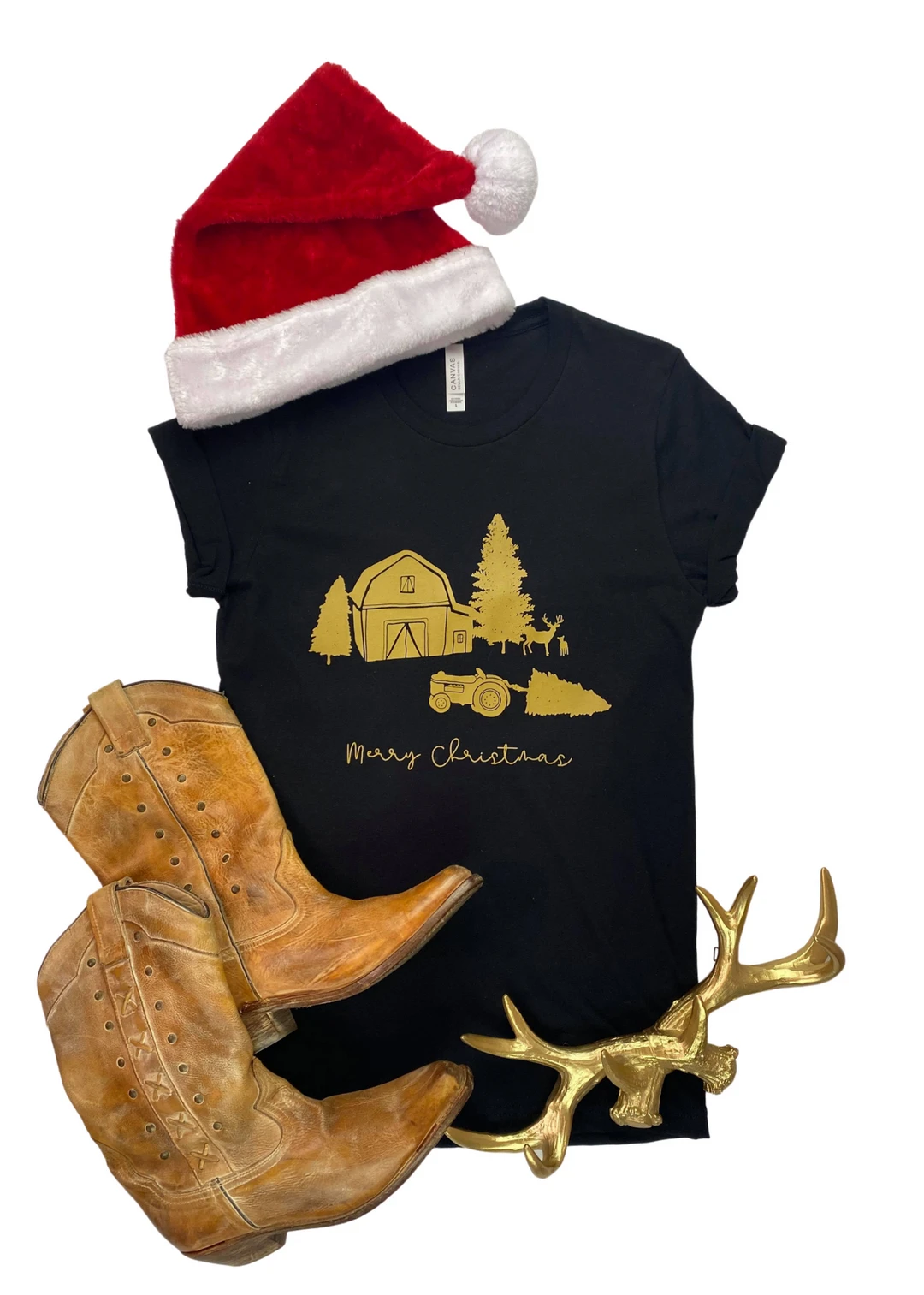 - Festive Farm Design: Show off your holiday spirit with this stylish Black Merry Christmas Farm Short Sleeve Tee, featuring a charming cowgirl and festive farm theme.