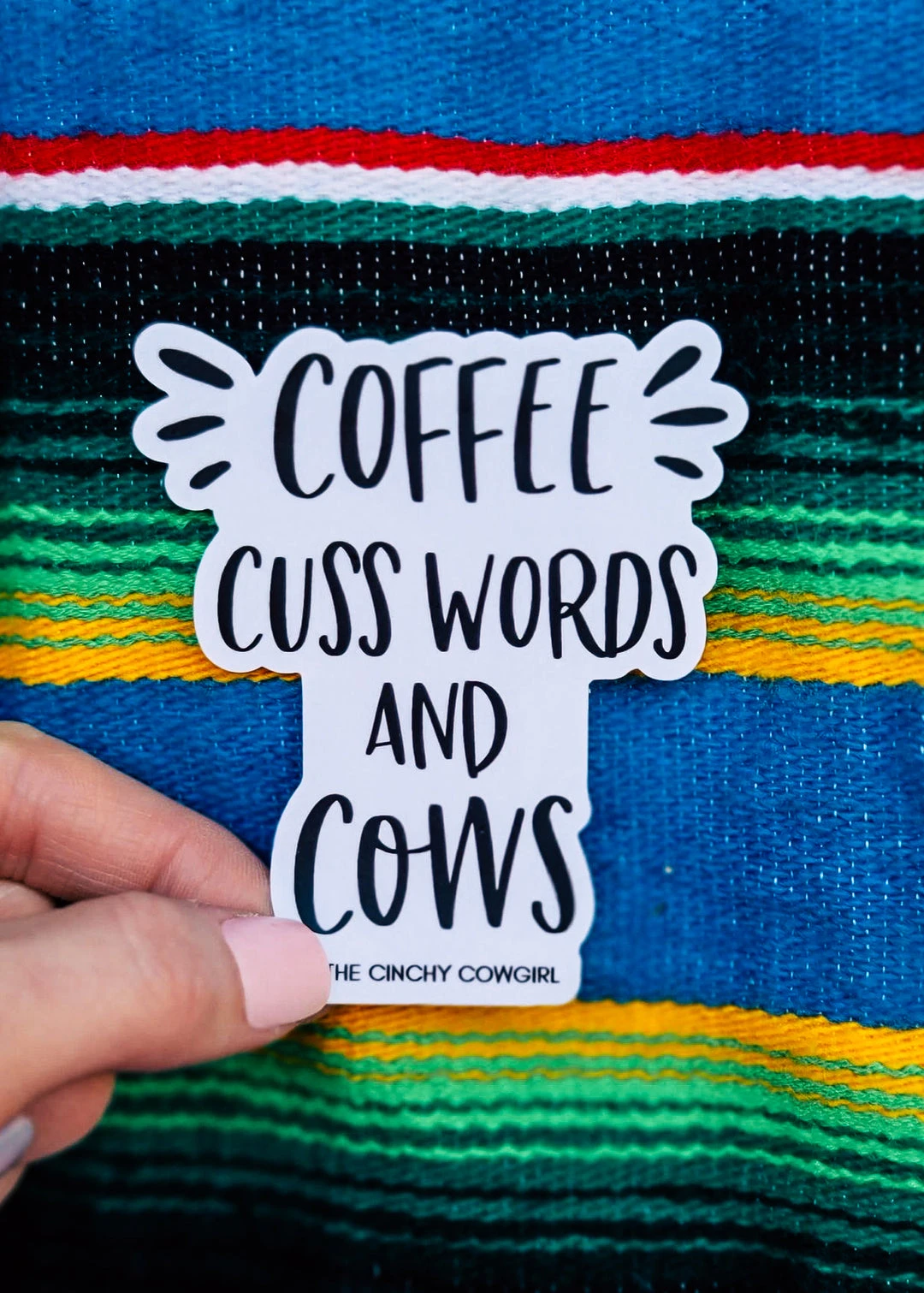 - Show off your sassy side with the Cinchy Cowgirl Coffee Cuss Words Cows Sticker. Featuring a witty design, this sticker is perfect for coffee lovers and cowgirls alike.