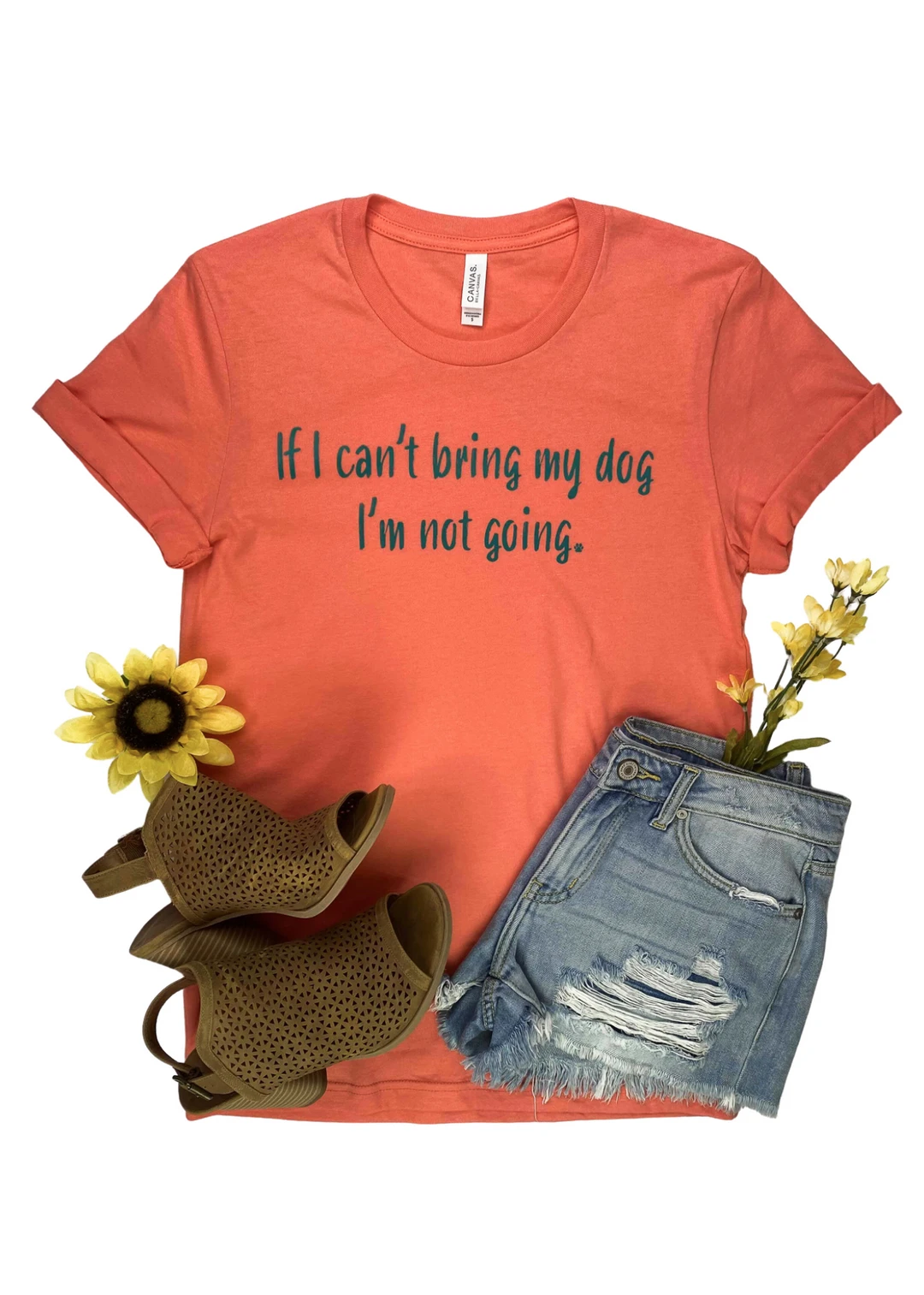 If I Can’t Bring My Dog I’m Not Going! How funny and true! Printed on a Coral Tee with Teal ink!