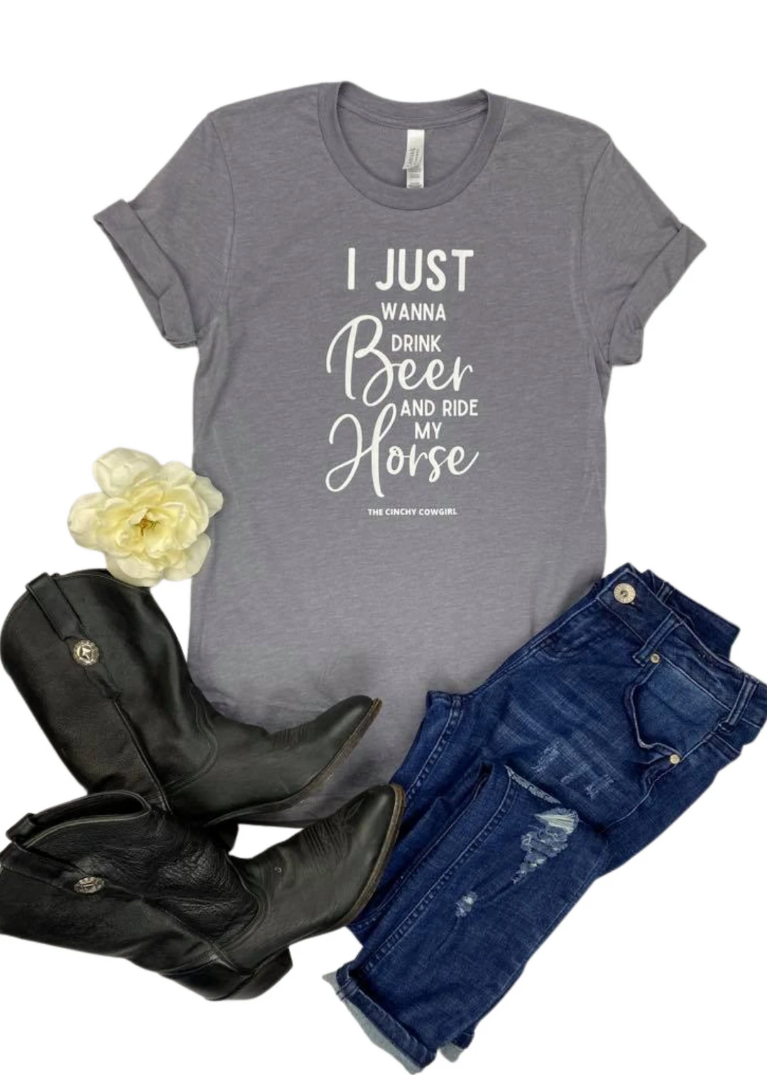 - Unleash your inner cowgirl with the Cinchy Cowgirl Drink Beer & Ride My Horse Graphic Tee. This fun and quirky Western-themed t-shirt is a must-have for any cowgirl at heart.