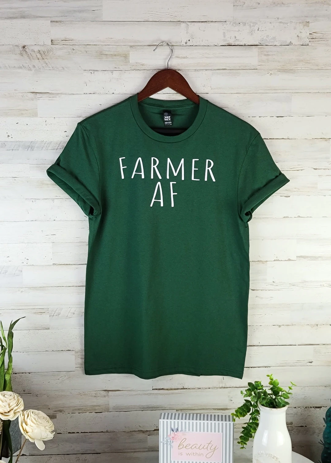 - Shop with confidence—hassle-free returns and fast shipping options available. Add the Cinchy Cowgirl Green Farmer AF Short Sleeve Tee to your cart now and enjoy this exclusive clearance deal!