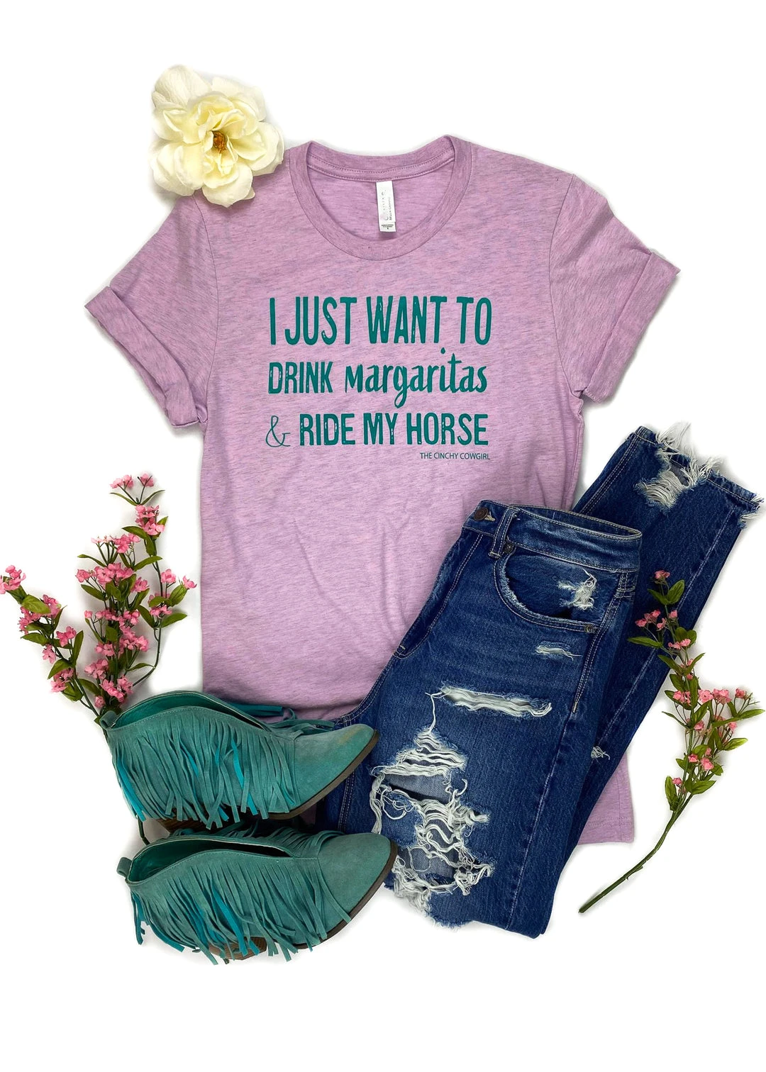 - The eye-catching graphic print showcases a playful message: ‘Drink Margaritas & Ride My Horse,’ making it a standout piece in your wardrobe. Great for gifting or personal use.