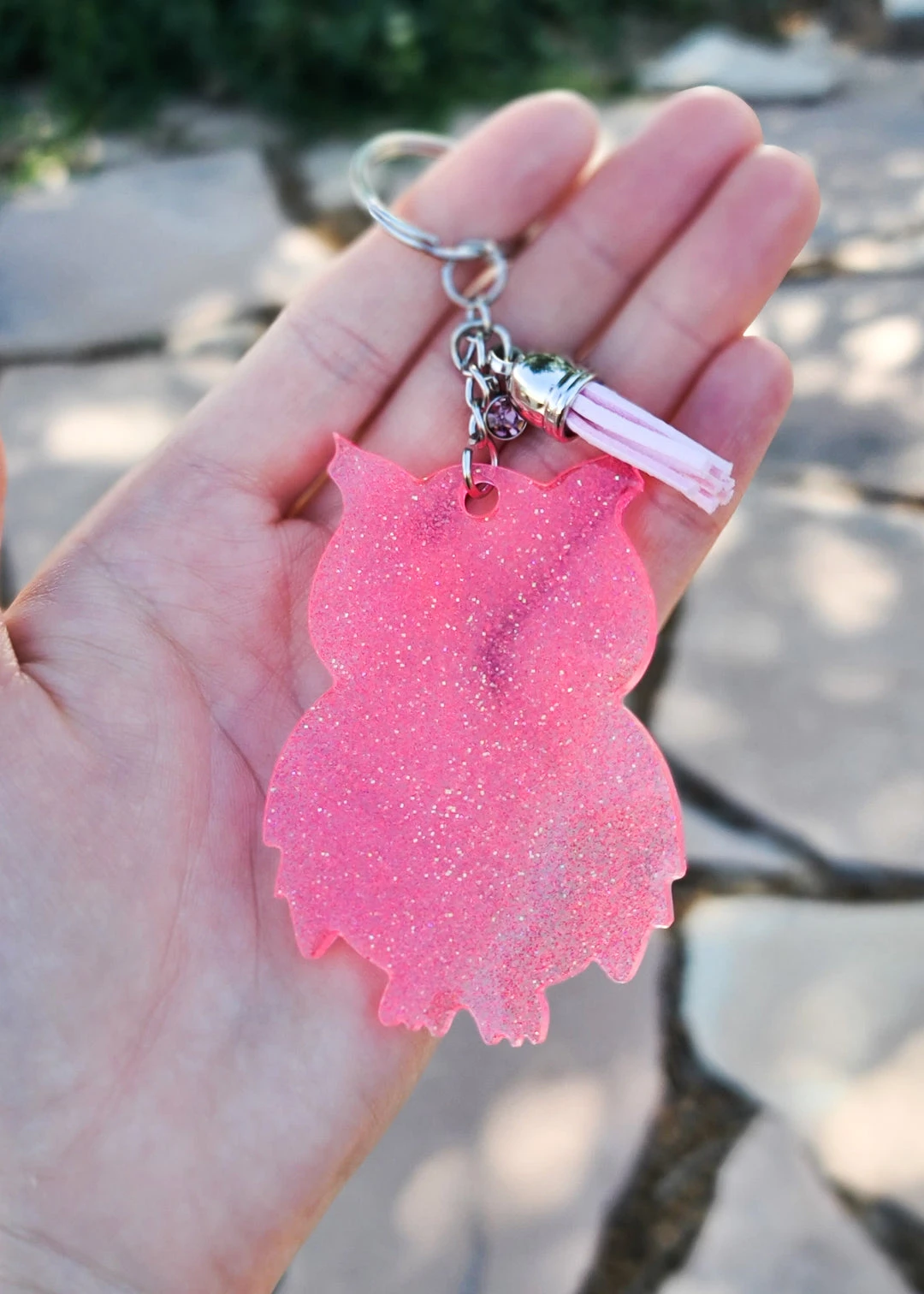- Add a touch of whimsy to your keys with the Cinchy Cowgirl Pink Owl Glitter Keychain. This adorable pink owl design is crafted with high-quality resin and sparkly glitter, making it a standout accessory.