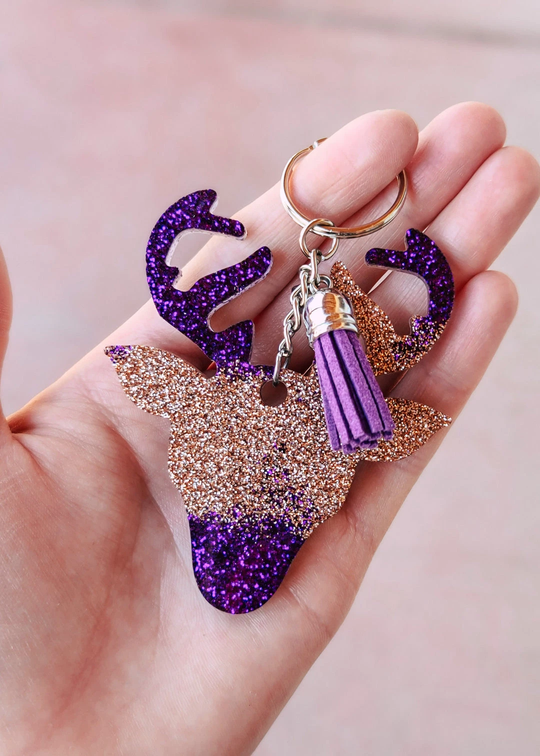 - Unique Design: Handcrafted resin keychain featuring a stylish deer design in vibrant purple and champagne colors, perfect for adding a touch of elegance to your keys or bag.