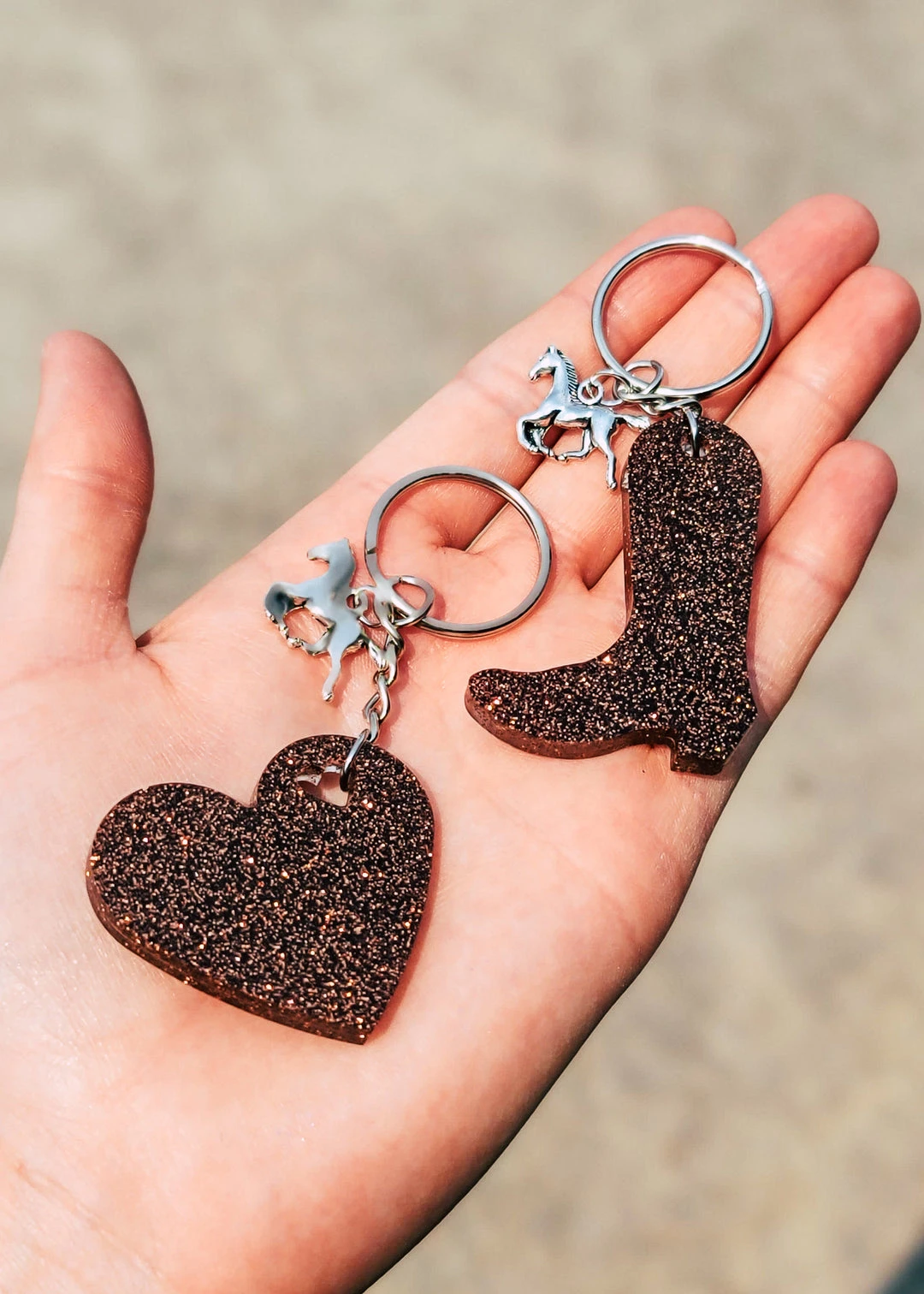 - Add a touch of Western charm to your keys with the Cinchy Cowgirl Resin Keychain. This beautifully crafted accessory features a detailed brown cowboy boot and a heart design, making it a unique and stylish addition to your collection.