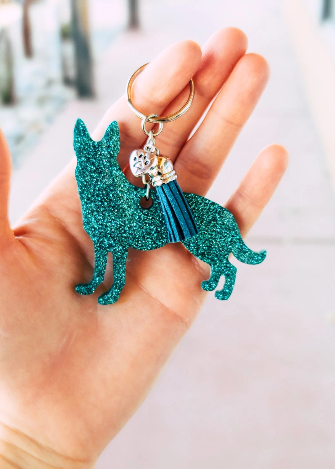 - Unique Design: The Cinchy Cowgirl Teal German Shepherd Resin Keychain features a vibrant teal color and a detailed German Shepherd design, perfect for dog lovers.