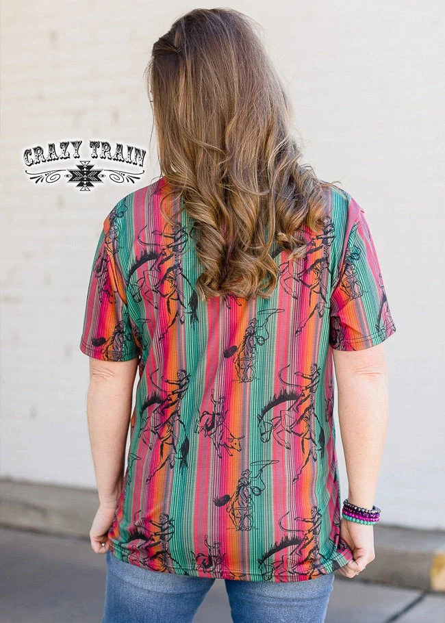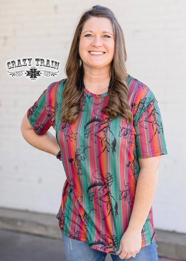 - Upgrade your wardrobe with the Crazy Train Rodeo Run Short Sleeve Tee, now available at a MEGA SALE price. Perfect for casual outings or rodeo events.