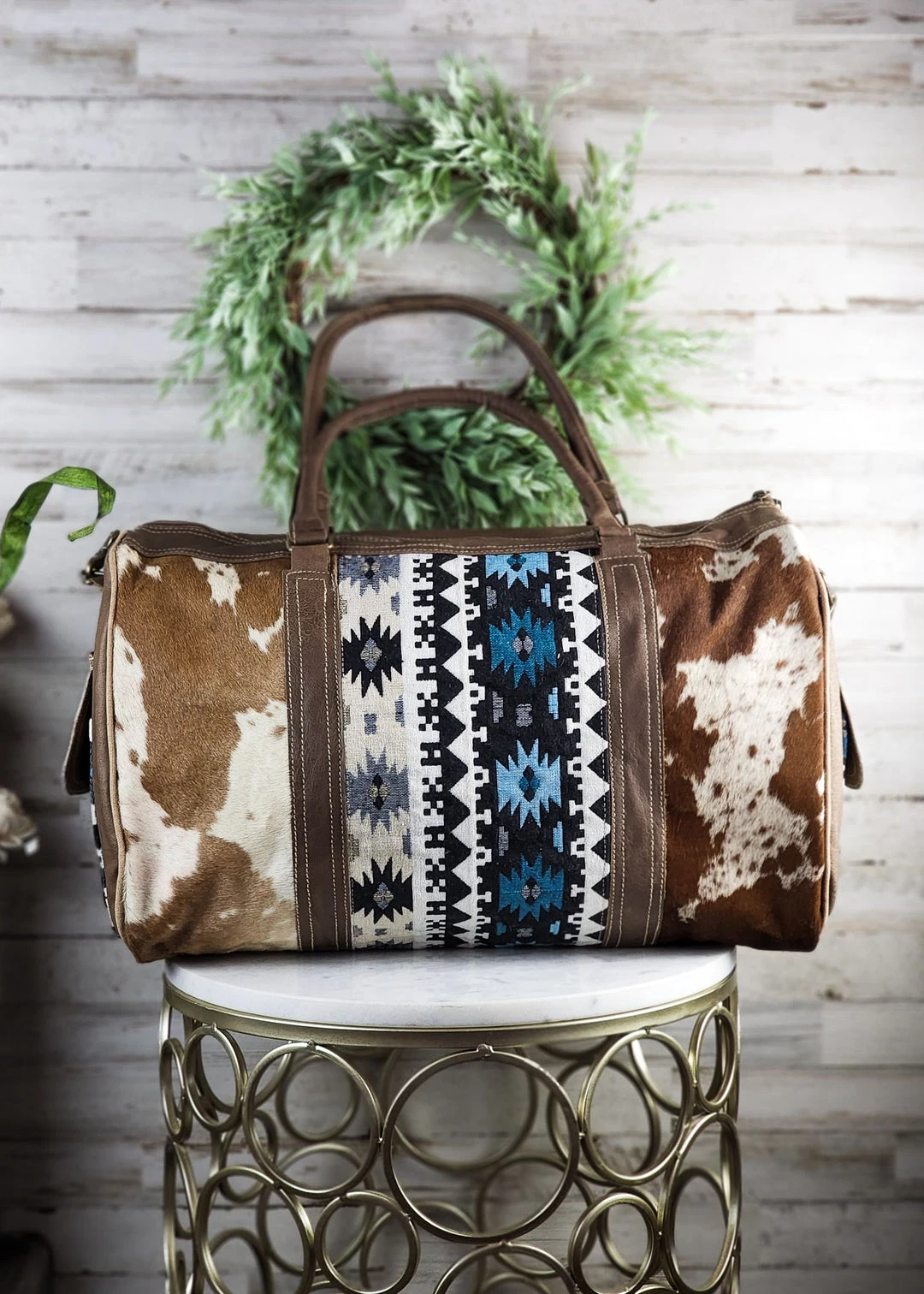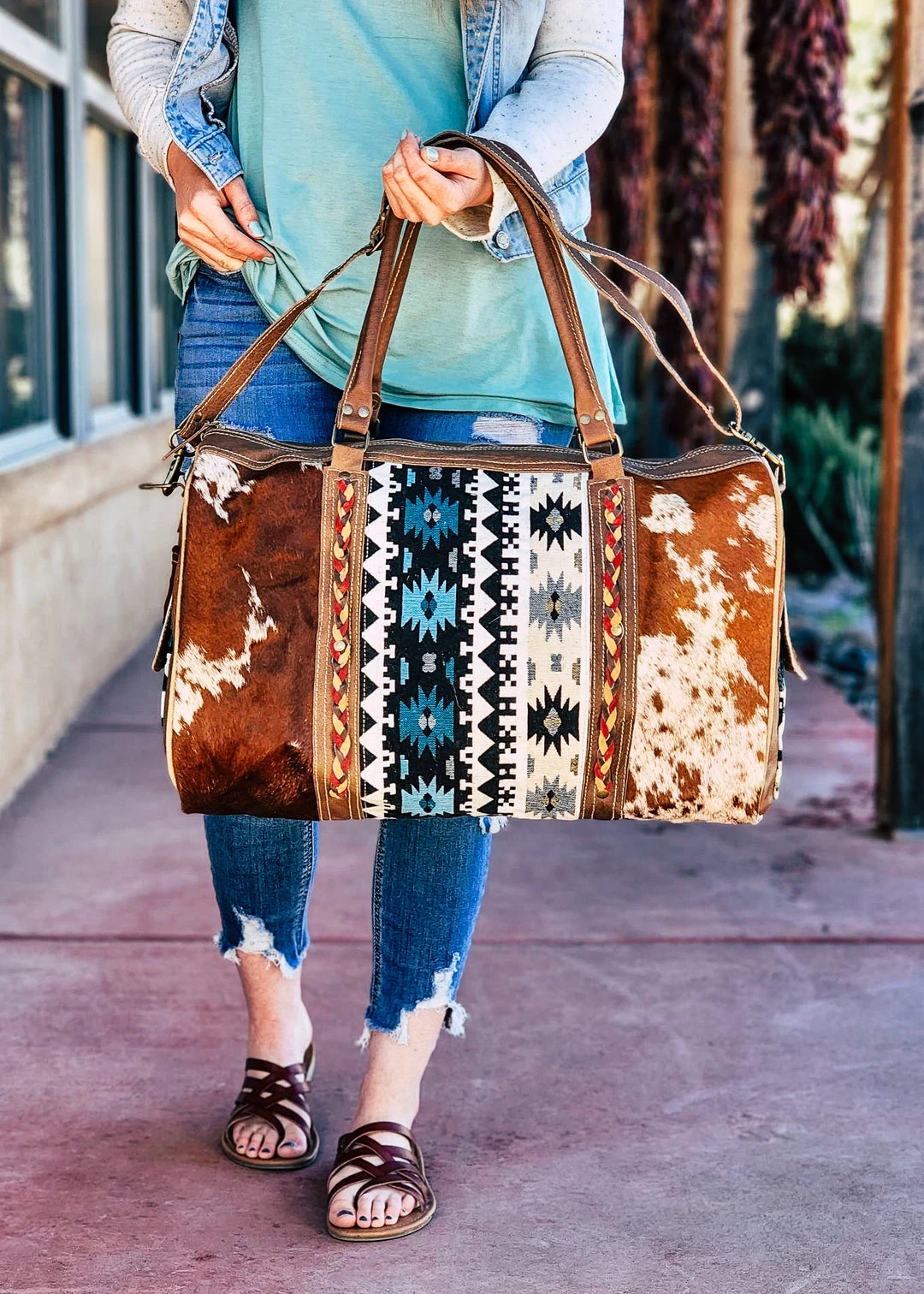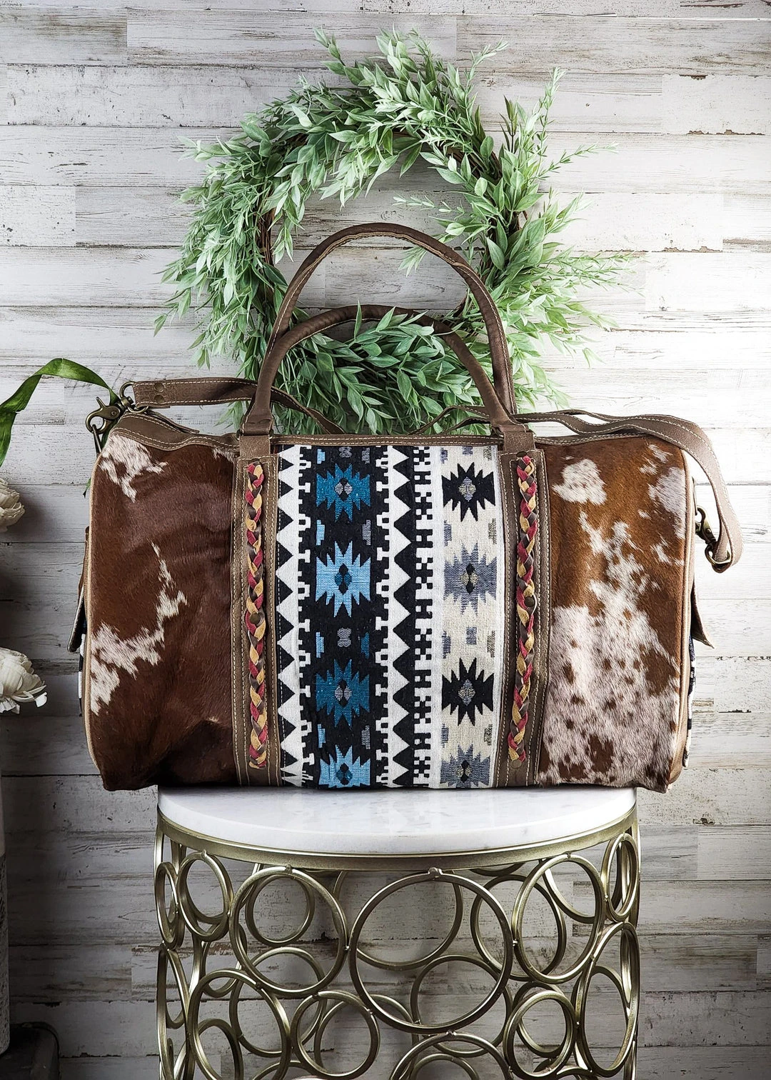 - Elevate your travel game with the Hopofly Bunkhouse Aztec Cowhide Weekender Bag. Order now and experience the perfect blend of style, durability, and practicality.