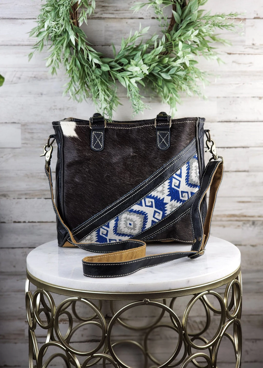 - The Hopofly Concealed Carry Blue Aztec Ace Crossbody Handbag combines style and security, featuring a unique Aztec design and a concealed carry compartment for your essentials.