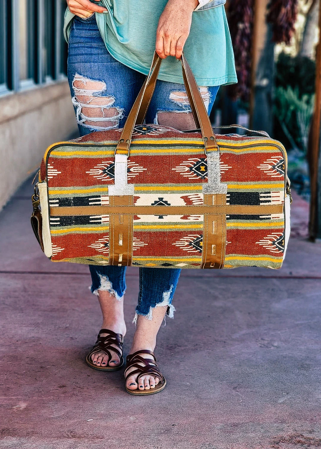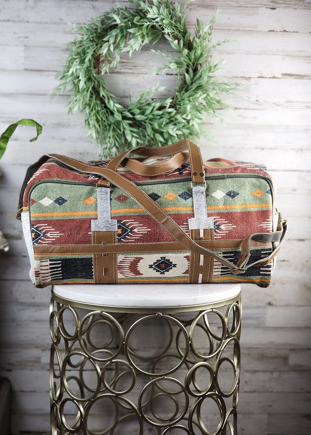- Elevate your travel style with the Hopofly Fall For You Aztec Weekender Bag. Featuring a vibrant Aztec print, this bag is perfect for adding a touch of flair to your outfits.