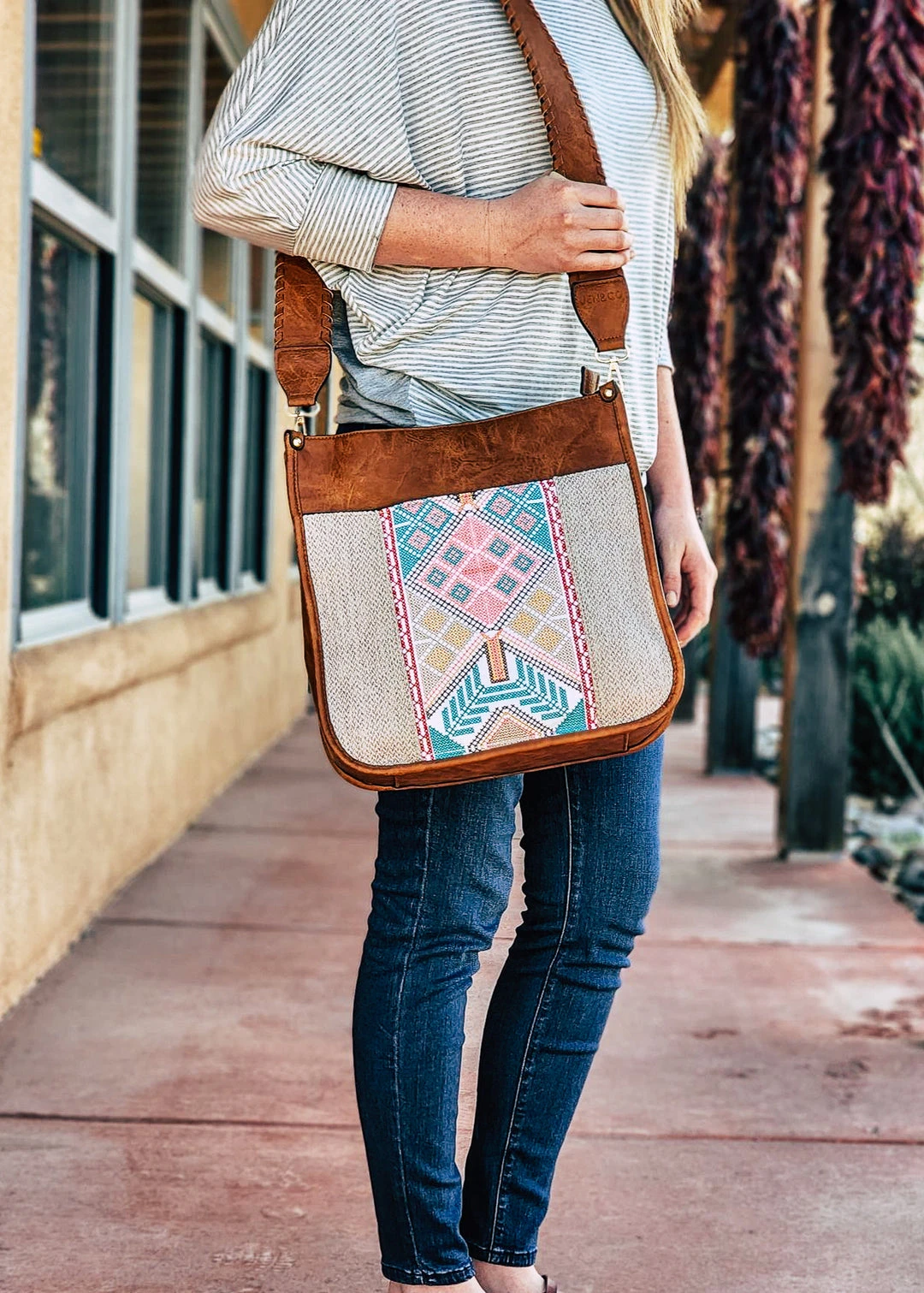 - Elevate your style with the Jen & Co Brown & Pink Aztec Crossbody Handbag. Featuring a unique Aztec design, this handbag is perfect for any occasion.