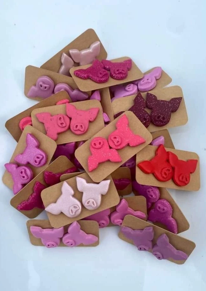 - Our K Clay Pig Post Earrings are designed for durability and comfort, making them perfect for everyday wear or special occasions.
