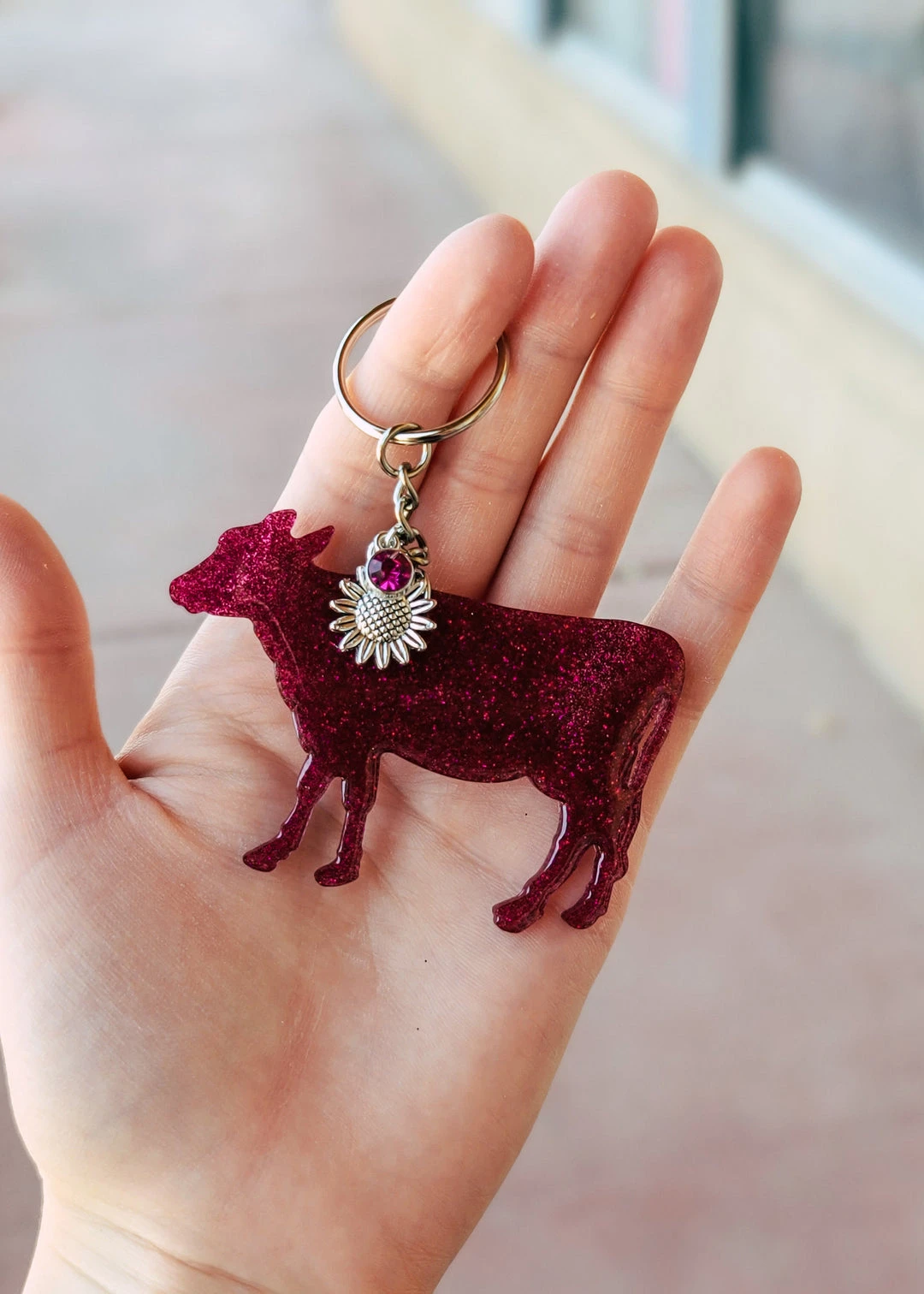 - Crafted with high-quality resin, this Magenta Cow Keychain is durable and long-lasting, making it a reliable accessory for everyday use.