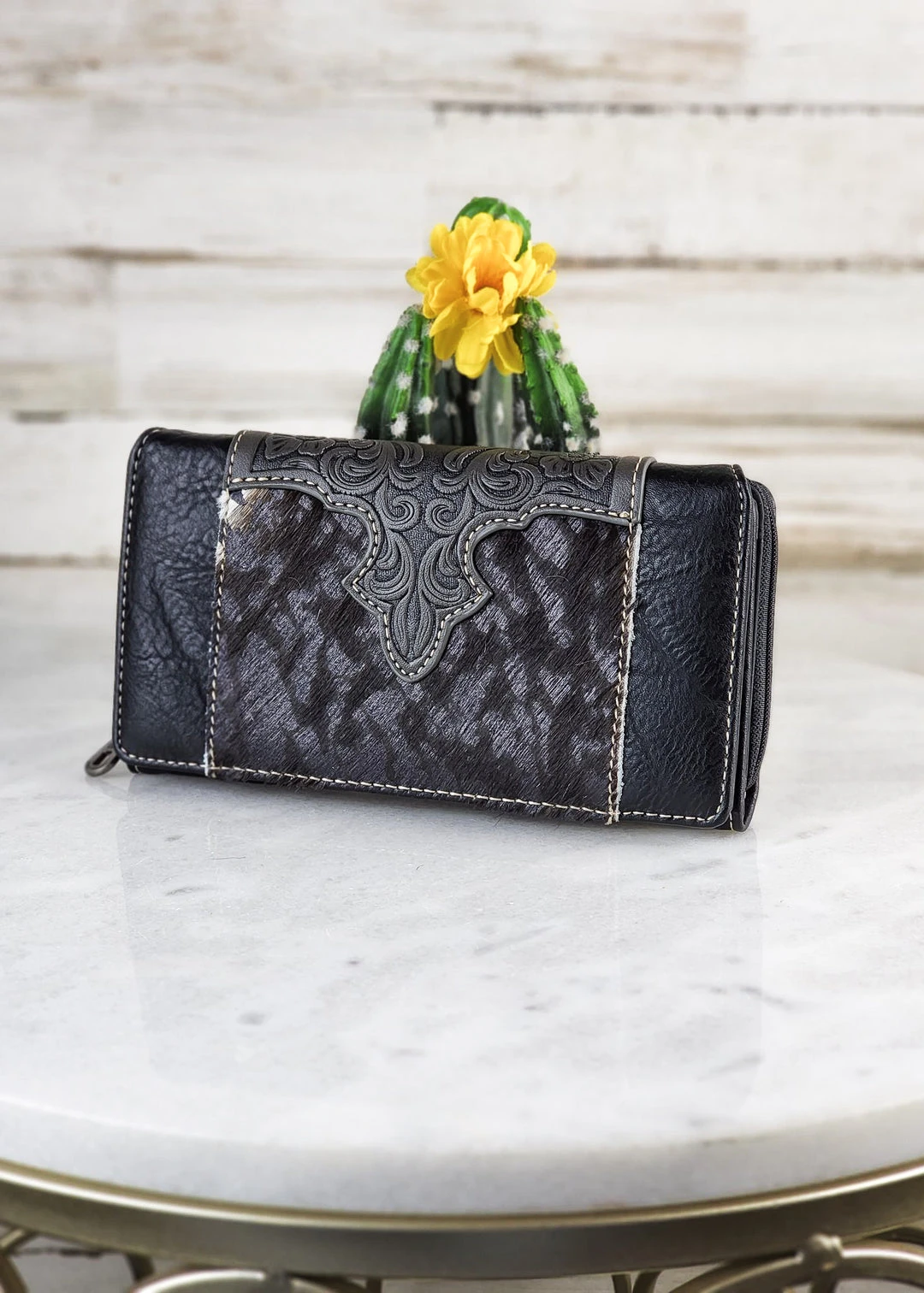 - Crafted from genuine black tooled western cowhide leather, this Montana West wallet combines durability with a rugged, stylish design.