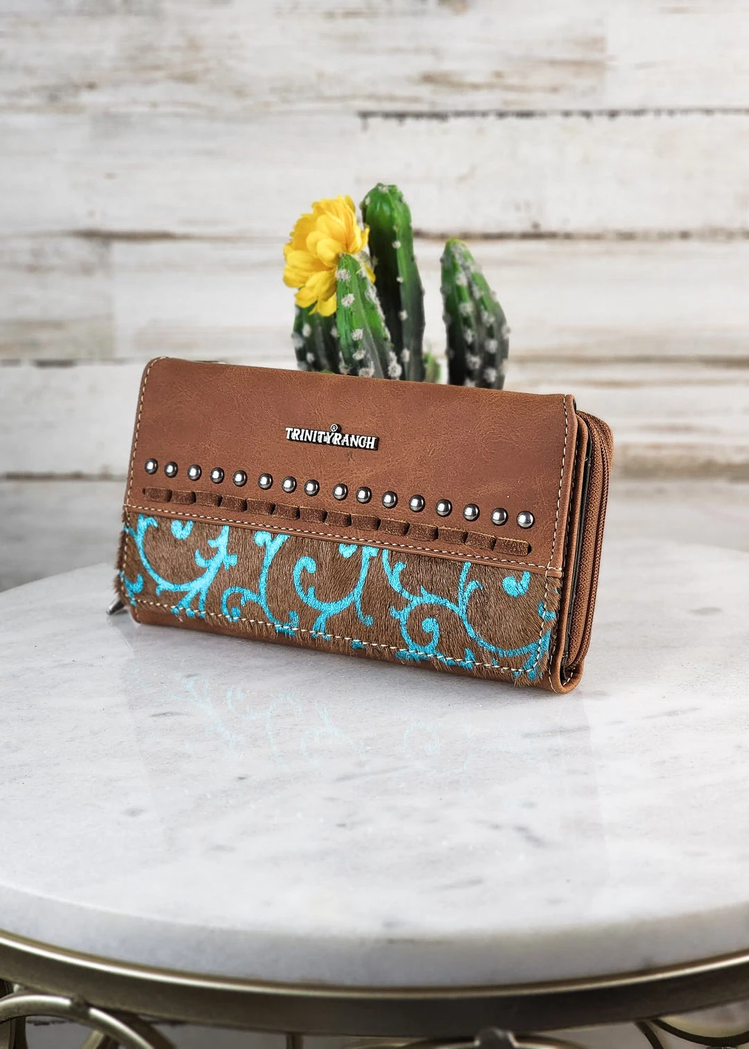 - Elevate your style with the Montana West Brown Turquoise Pattern Wallet. This chic wallet features a striking turquoise design, making it a standout accessory for any outfit.