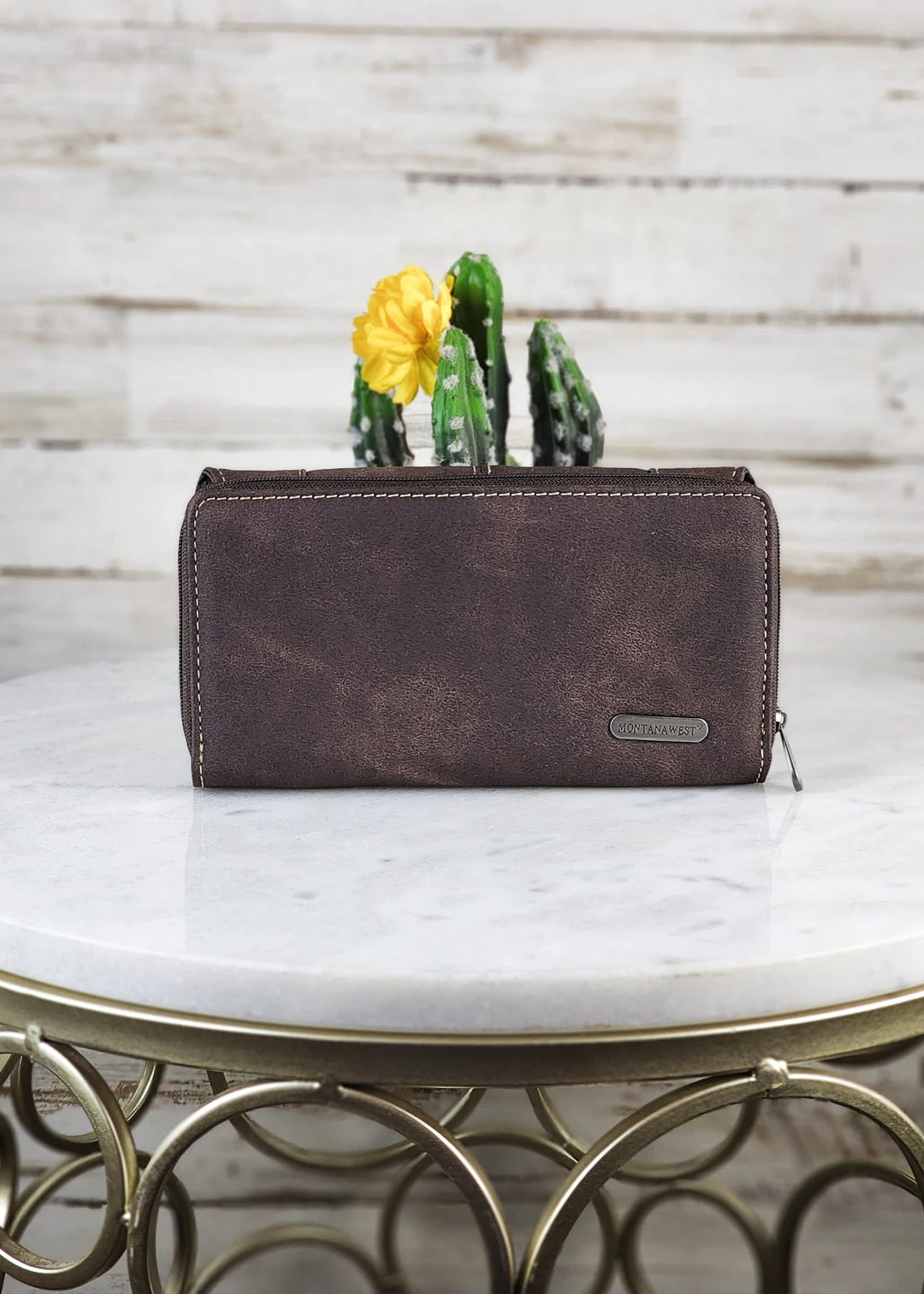 - Crafted from high-quality synthetic leather, the Montana West wallet is durable and built to last. Its sturdy construction ensures it can withstand daily wear and tear, maintaining its elegant appearance over time.
