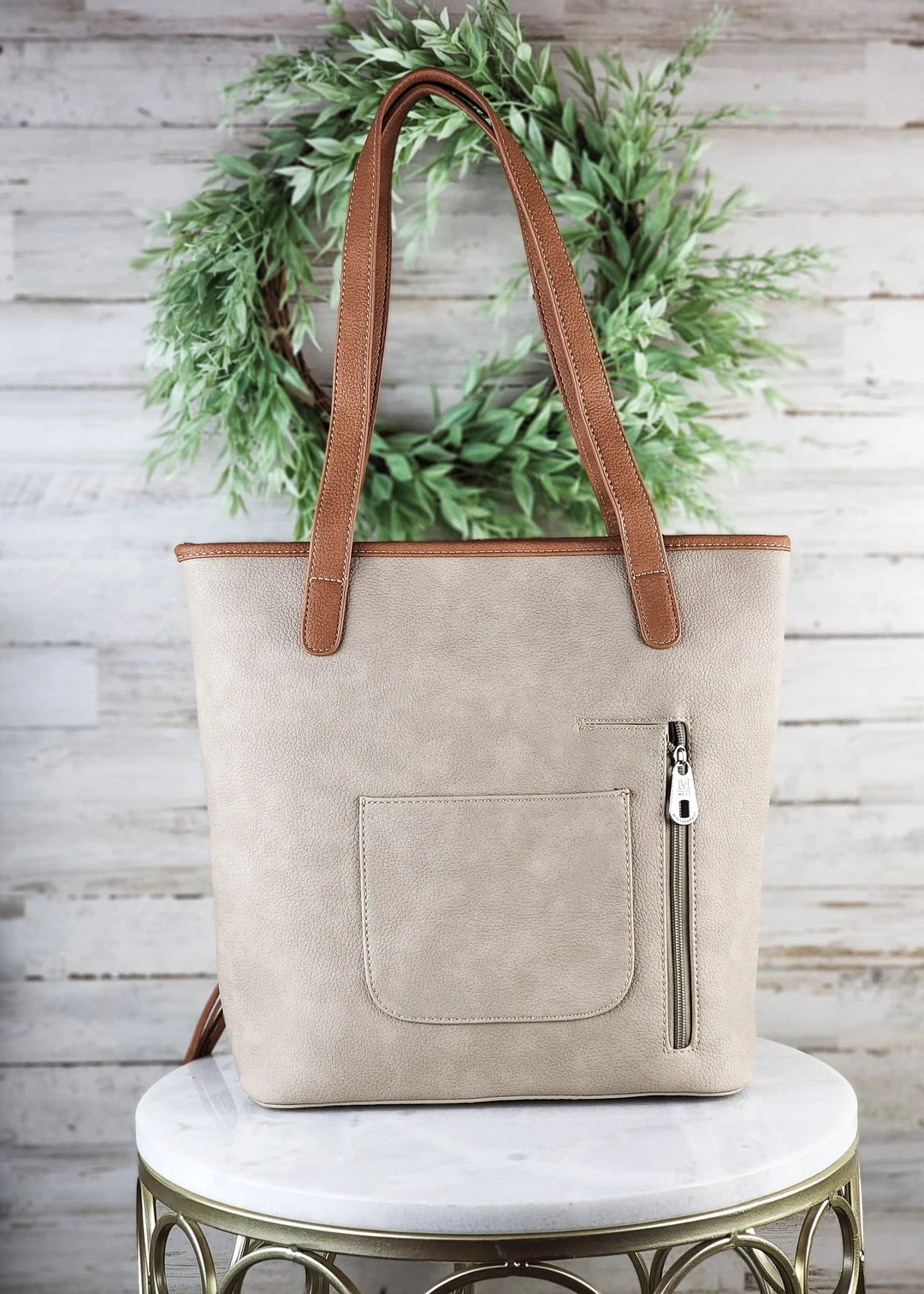 - Stay stylish and secure with the Montana West Khaki Arrow Tote Handbag. Designed for women who value both fashion and functionality, this tote bag features a discreet concealed carry compartment.
