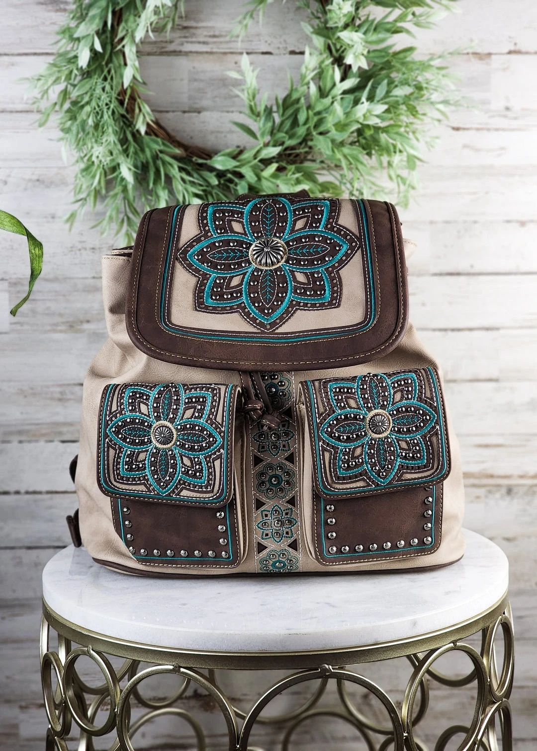- The Montana West Khaki Floral Concealed Carry Backpack combines style and functionality, featuring a chic floral design with a concealed carry compartment for added security.
