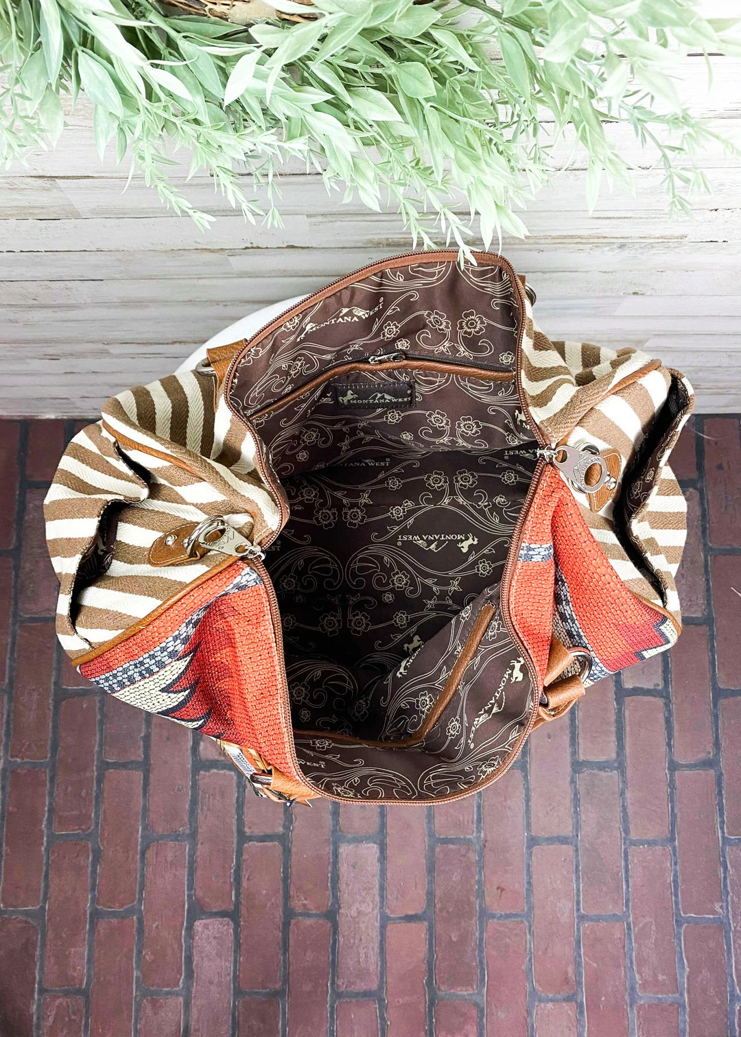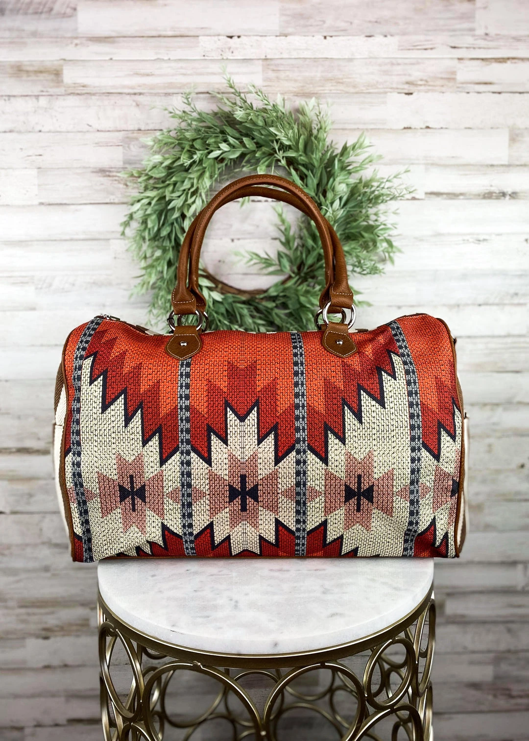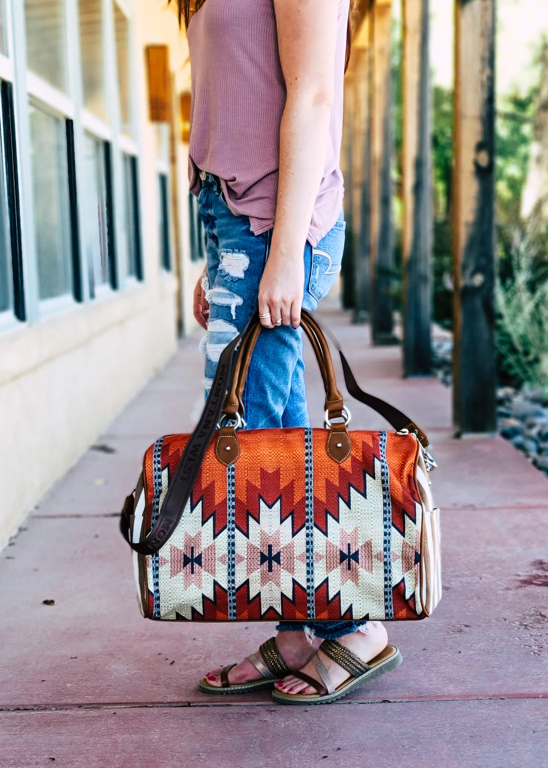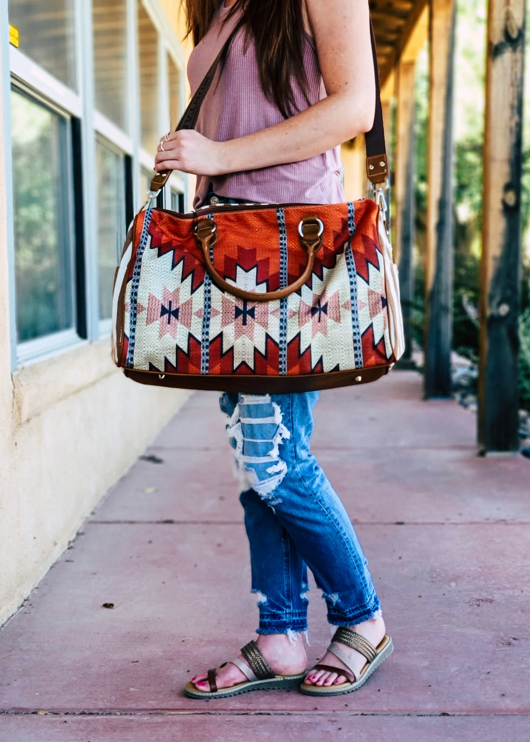 - The Montana West Warm Aztec Weekender Bag combines style and functionality, making it the perfect accessory for any occasion. Its vibrant Aztec design adds a pop of color to your outfit.