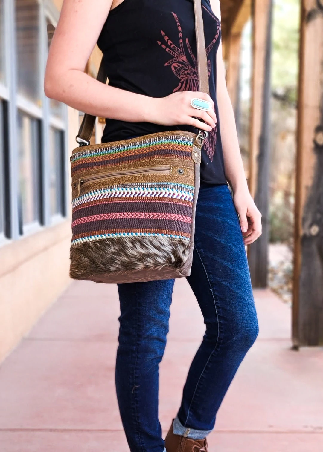 - Enjoy hassle-free shopping with secure payment options and fast, reliable delivery. Add the Myra Aztec Cowhide Tiered Handbag to your collection today!
