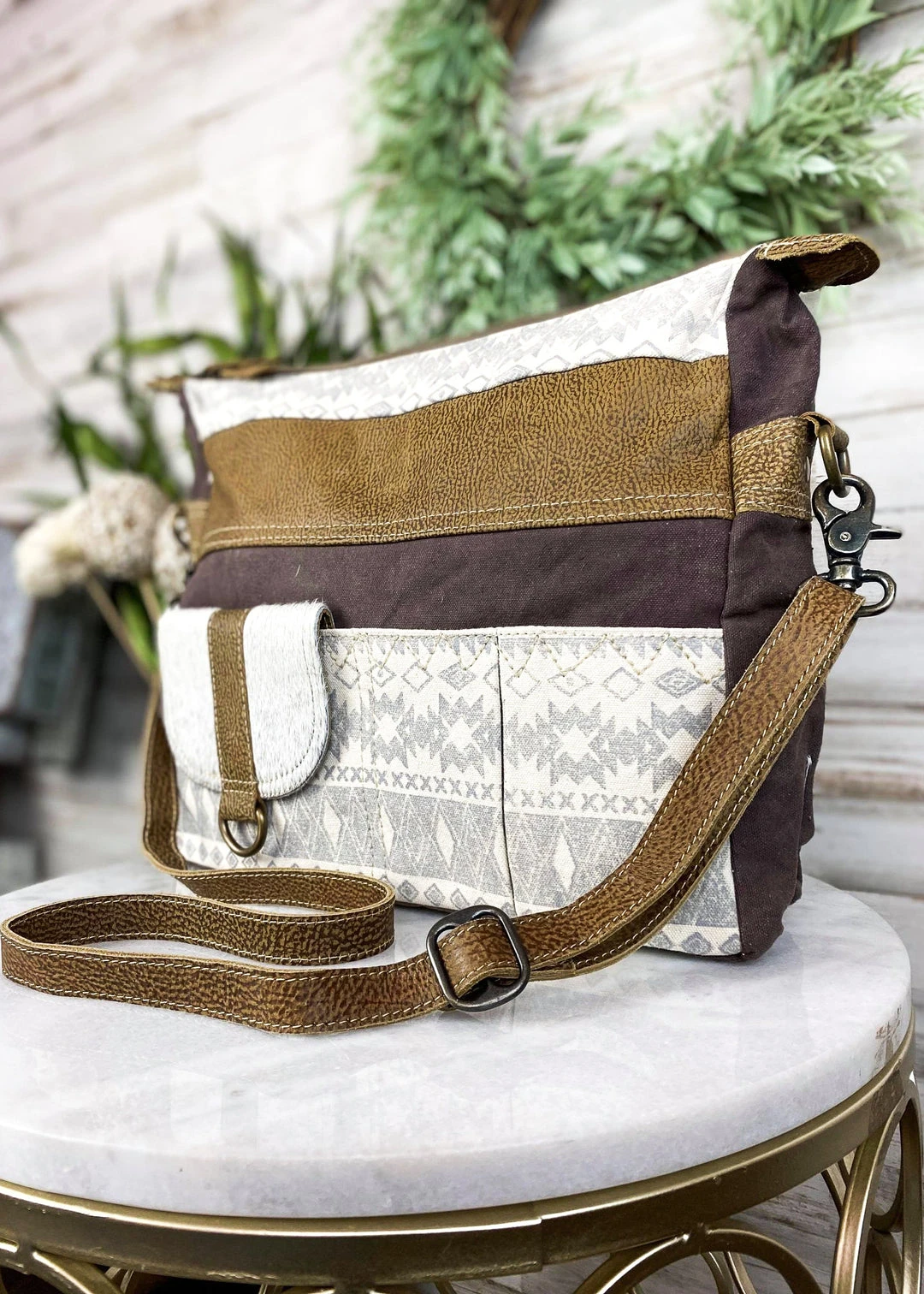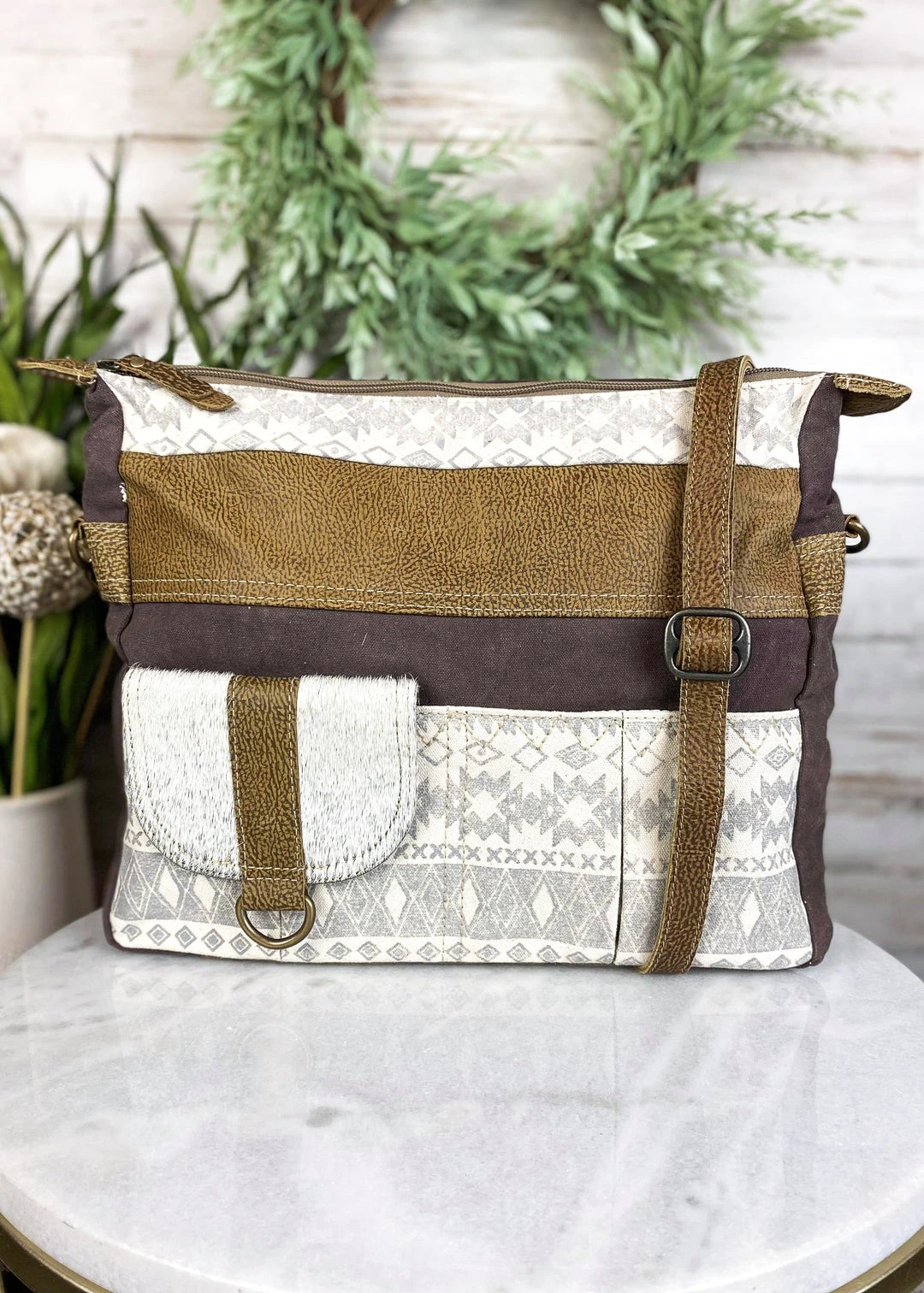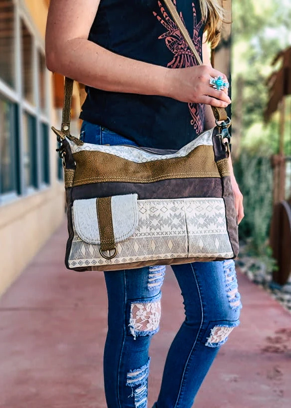 - The Myra Aztec Crossbody Travelers Handbag combines style and functionality, making it the perfect accessory for any occasion. Its unique Aztec design adds a touch of elegance to your outfit.