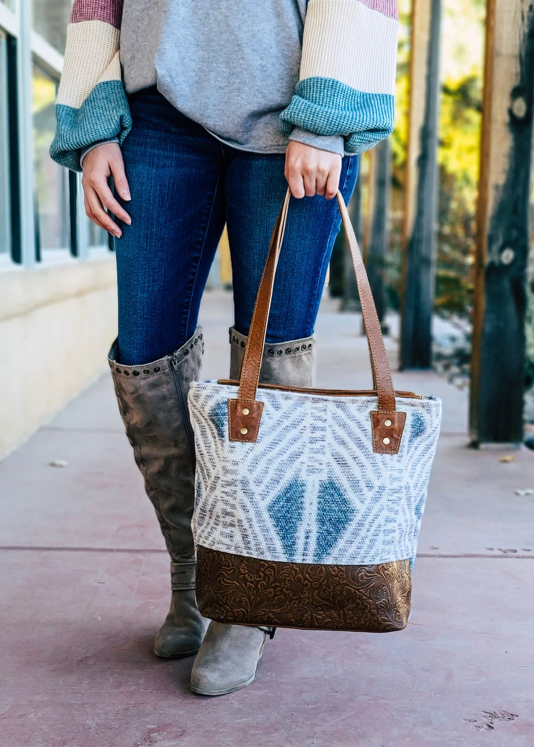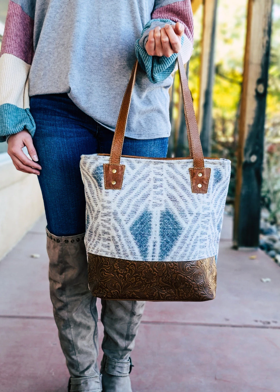 - Experience the perfect combination of style and functionality with the Myra Concealed Carry Aztec Tooled Leather Tote Handbag. Designed for the modern woman who values both fashion and security.