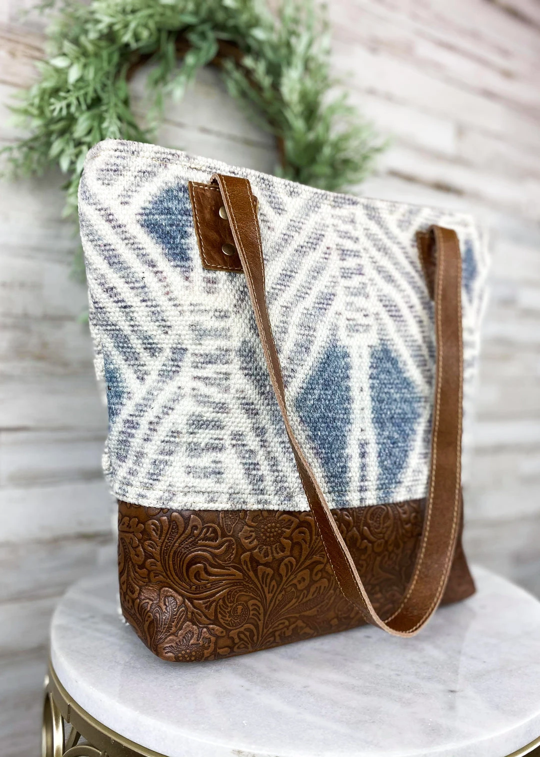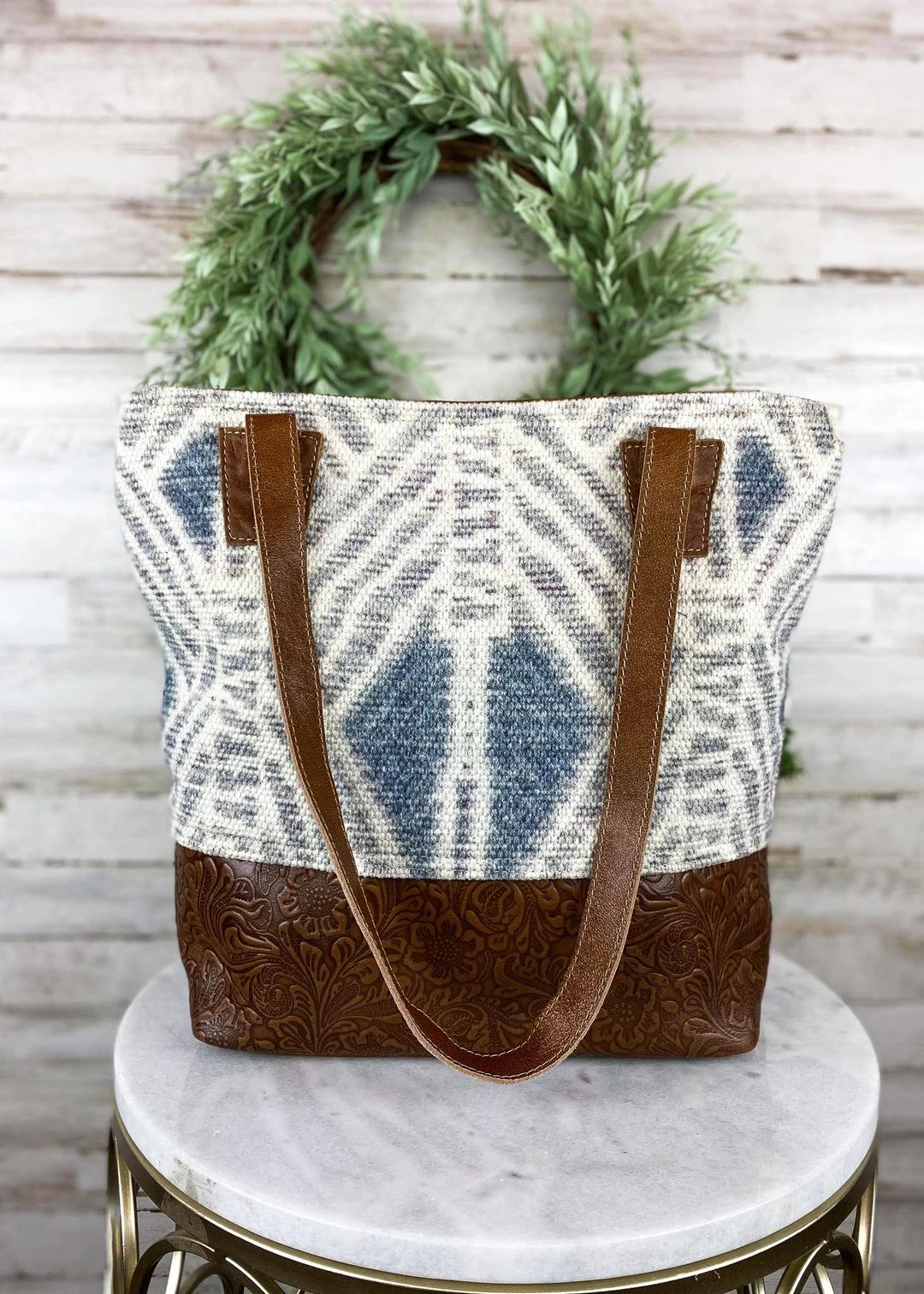 - Crafted from premium tooled leather, this tote bag features a unique Aztec design, making it a standout accessory for any outfit. Its spacious interior ensures you can carry all your essentials with ease.