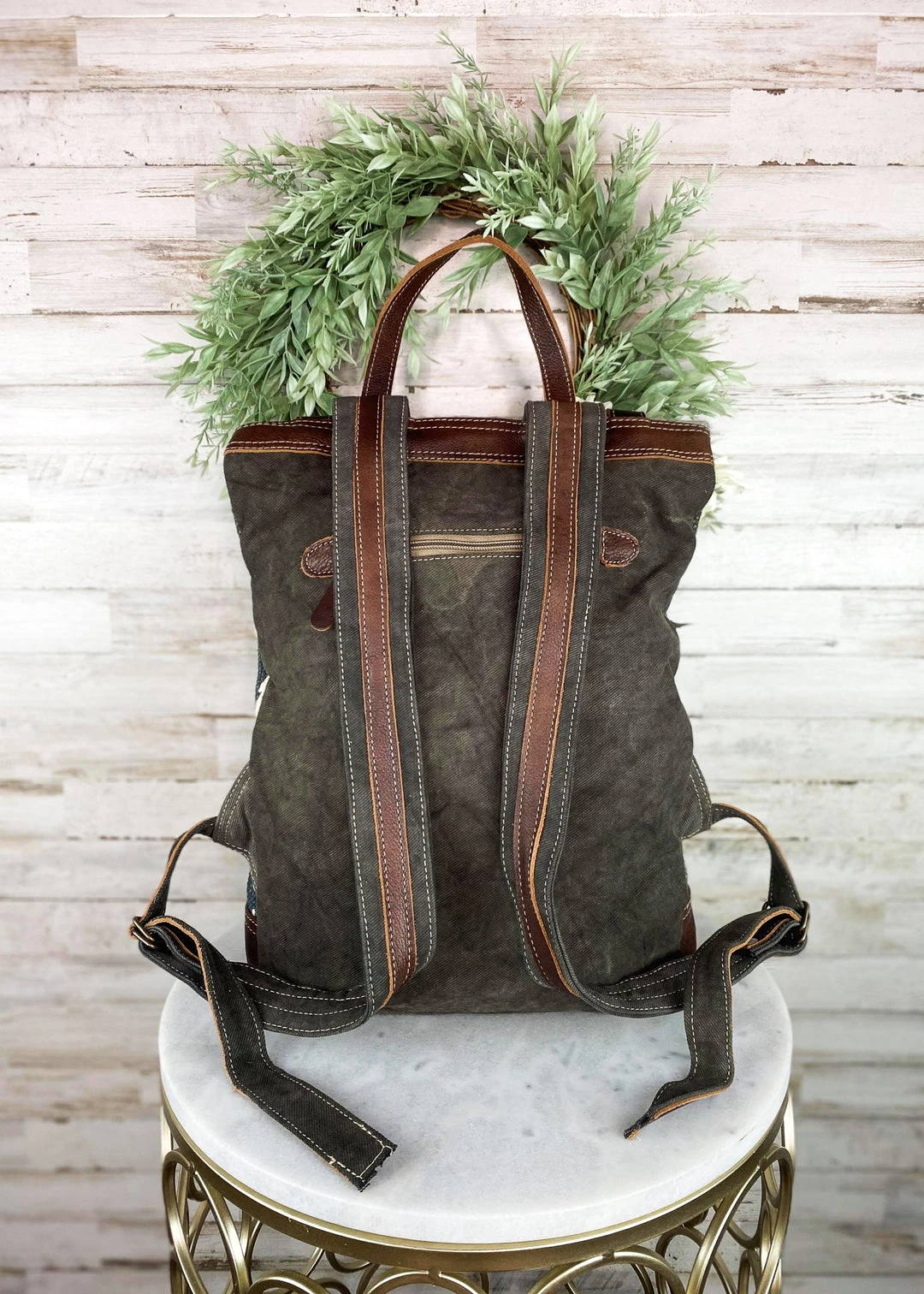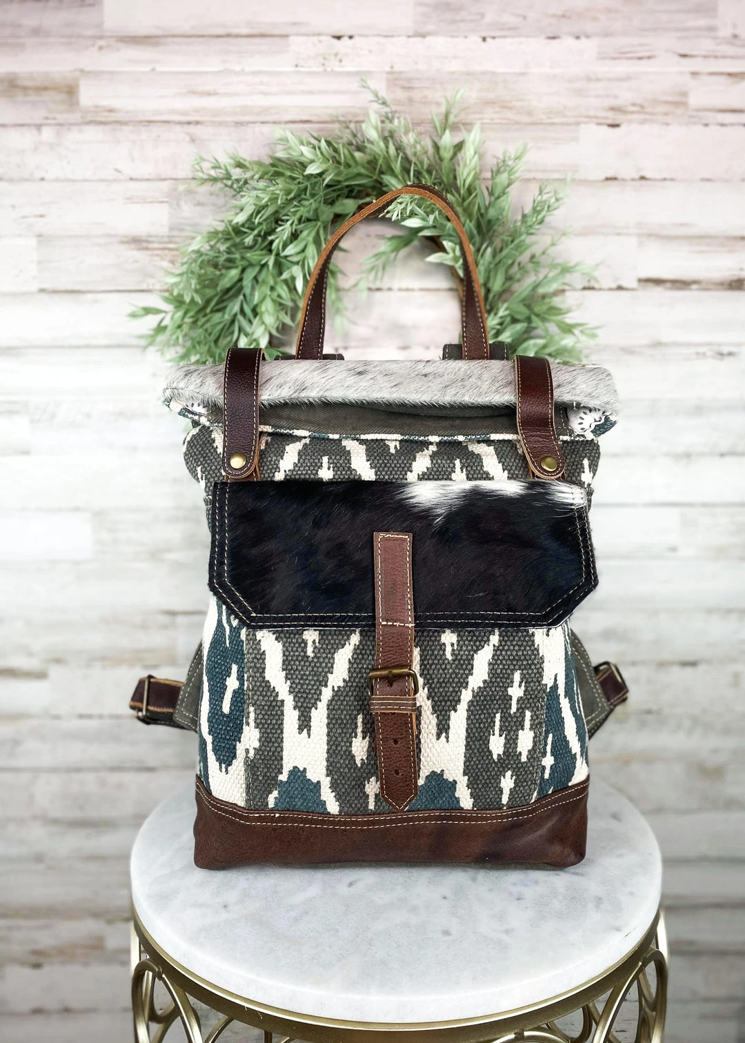 - Elevate your style with the Myra Blue & Gray Aztec Backpack, a perfect blend of modern design and functionality. Ideal for casual outings, travel, or daily use.