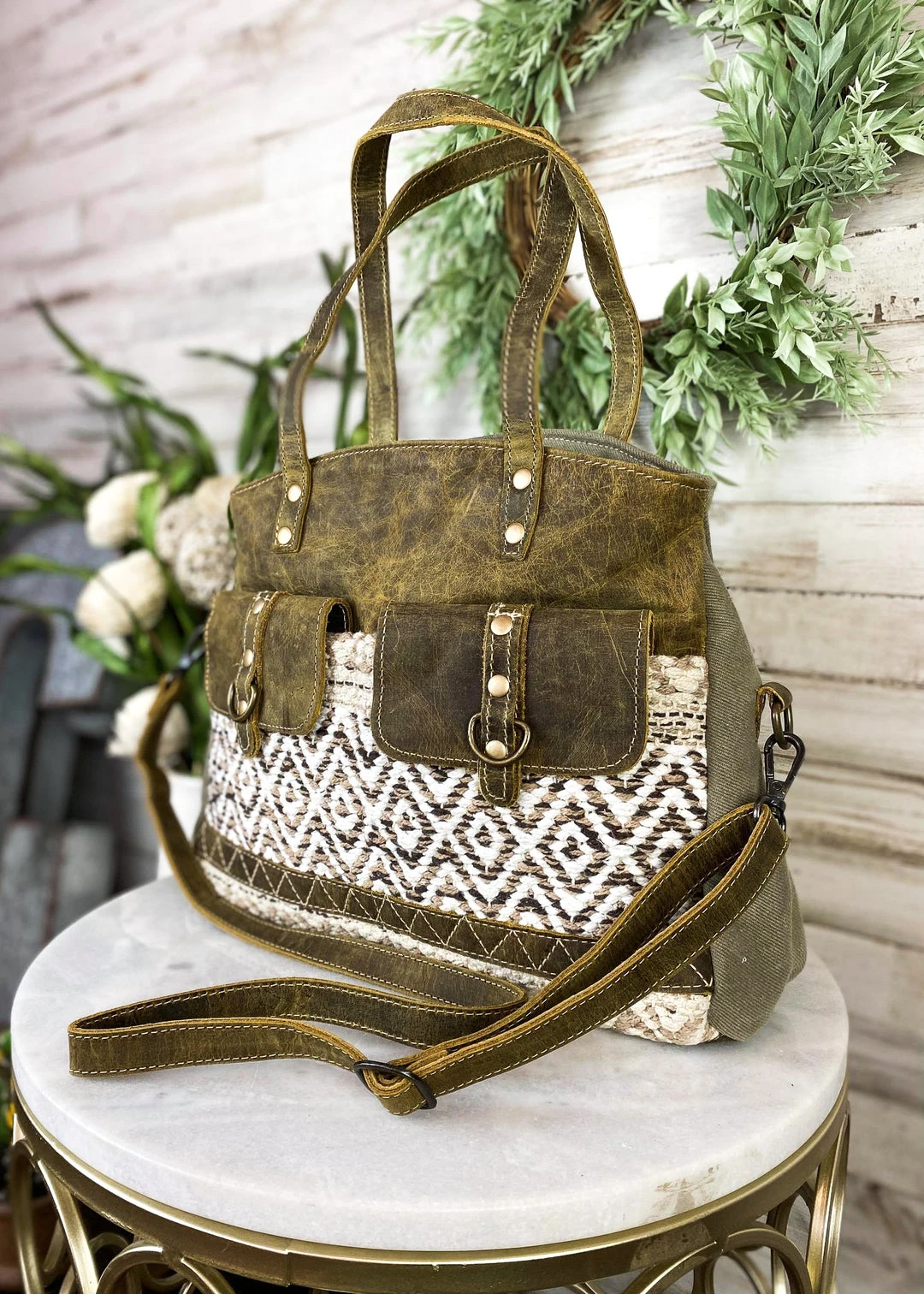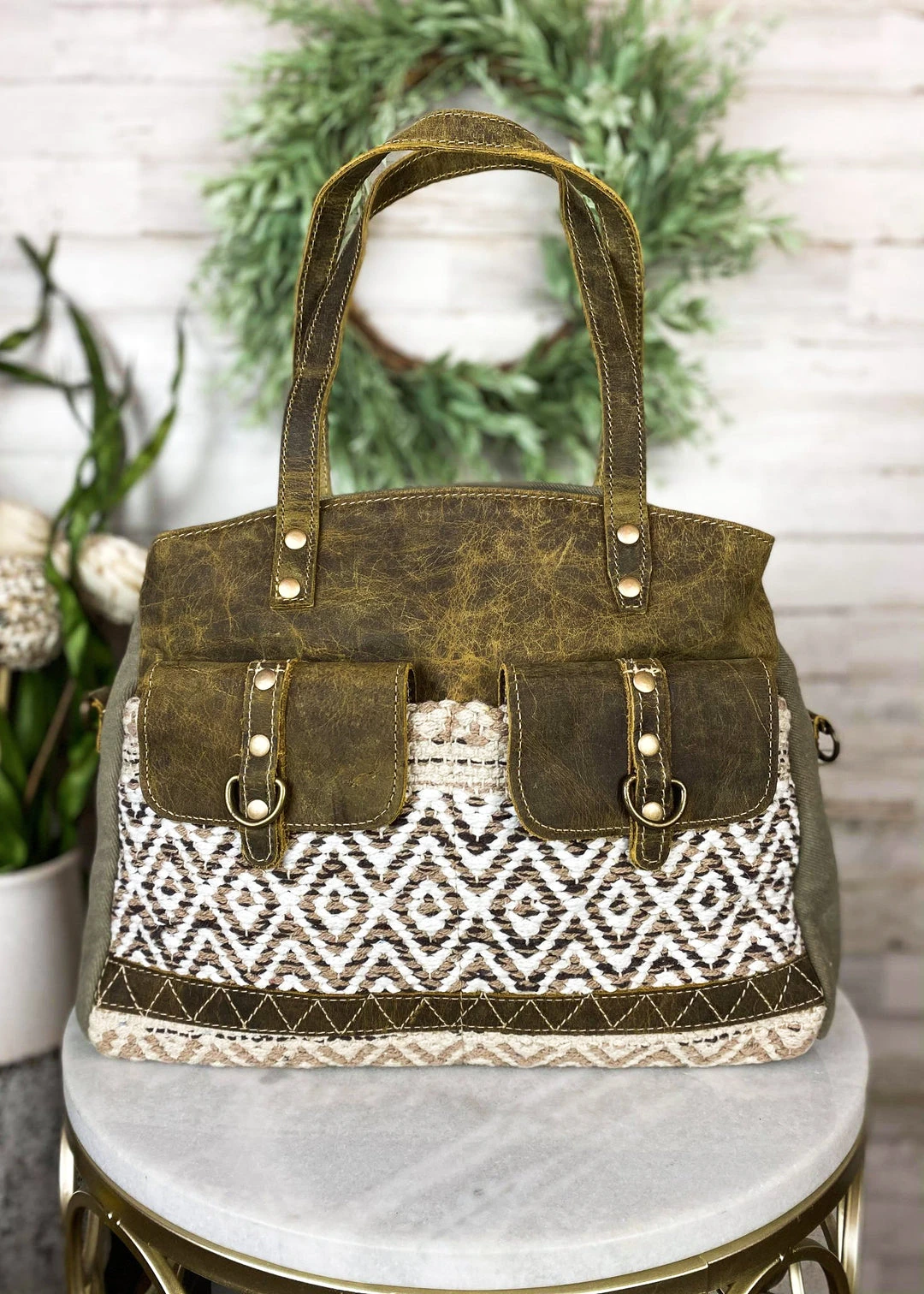 - The Myra Boho Aztec Neutral Tote Handbag combines boho chic with practical design. Its neutral tones and Aztec patterns make it a versatile accessory for any outfit.
