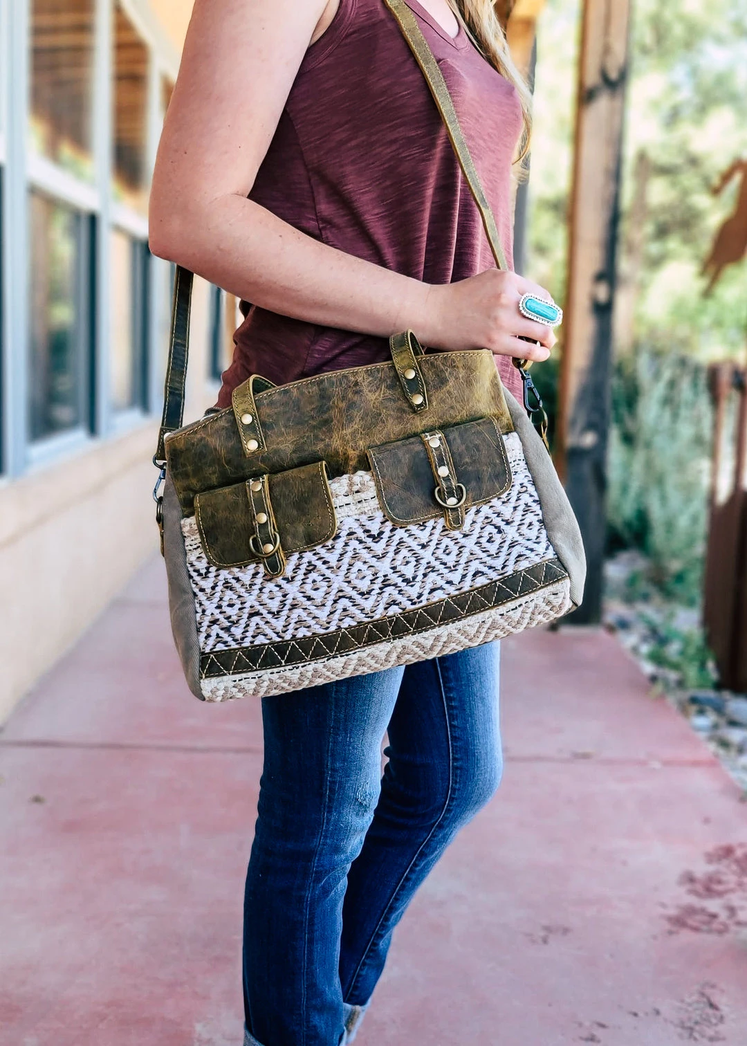 - Enjoy hassle-free shopping with our secure payment options and fast, reliable shipping. The Myra Boho Aztec Neutral Tote Handbag is delivered to your doorstep with care.