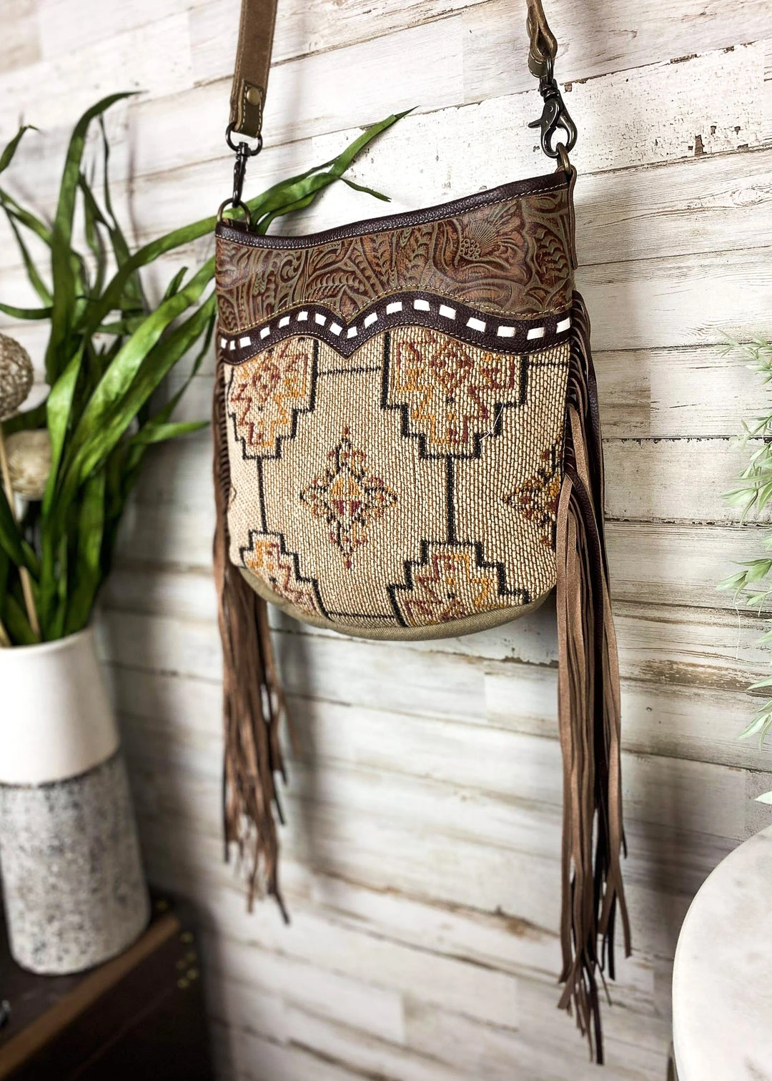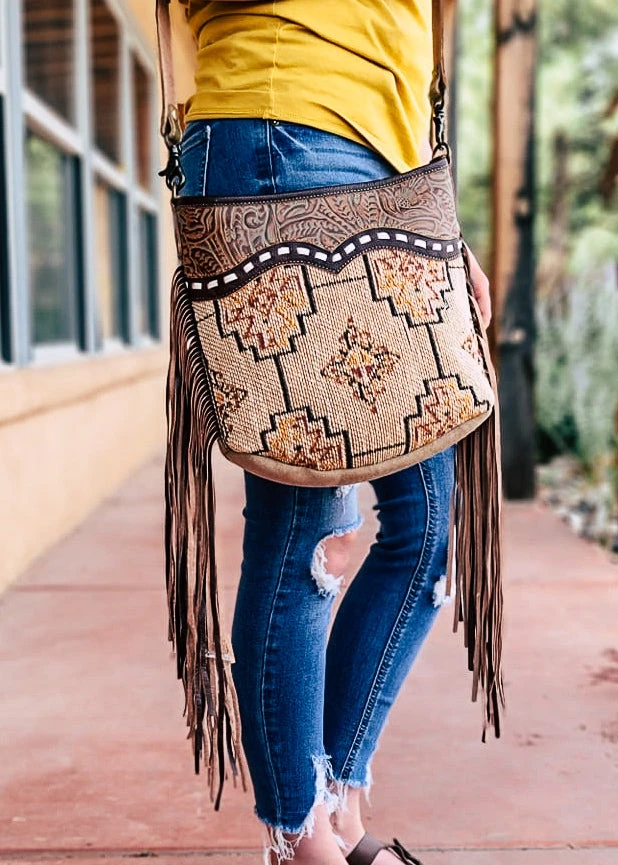 - Elevate your style with the Myra Brown Aztec Scarlett Crossbody Handbag. Featuring a unique Aztec design, this handbag is perfect for any occasion.
