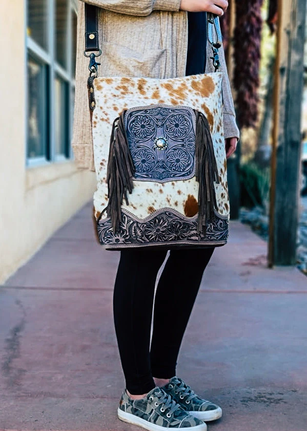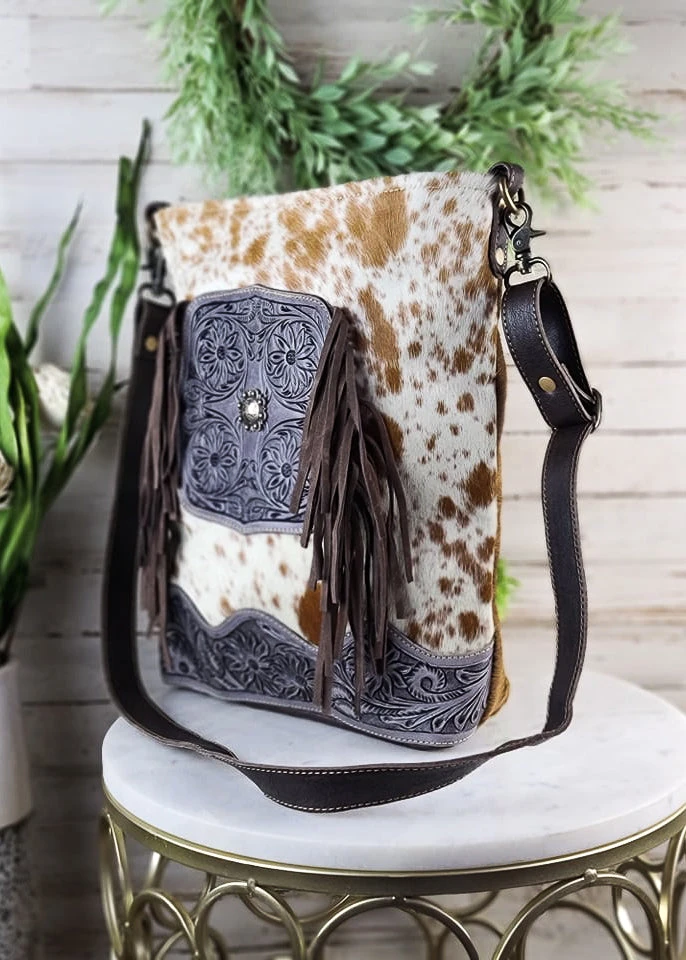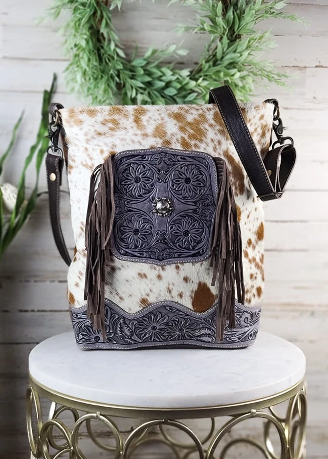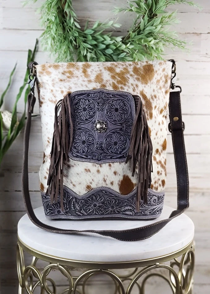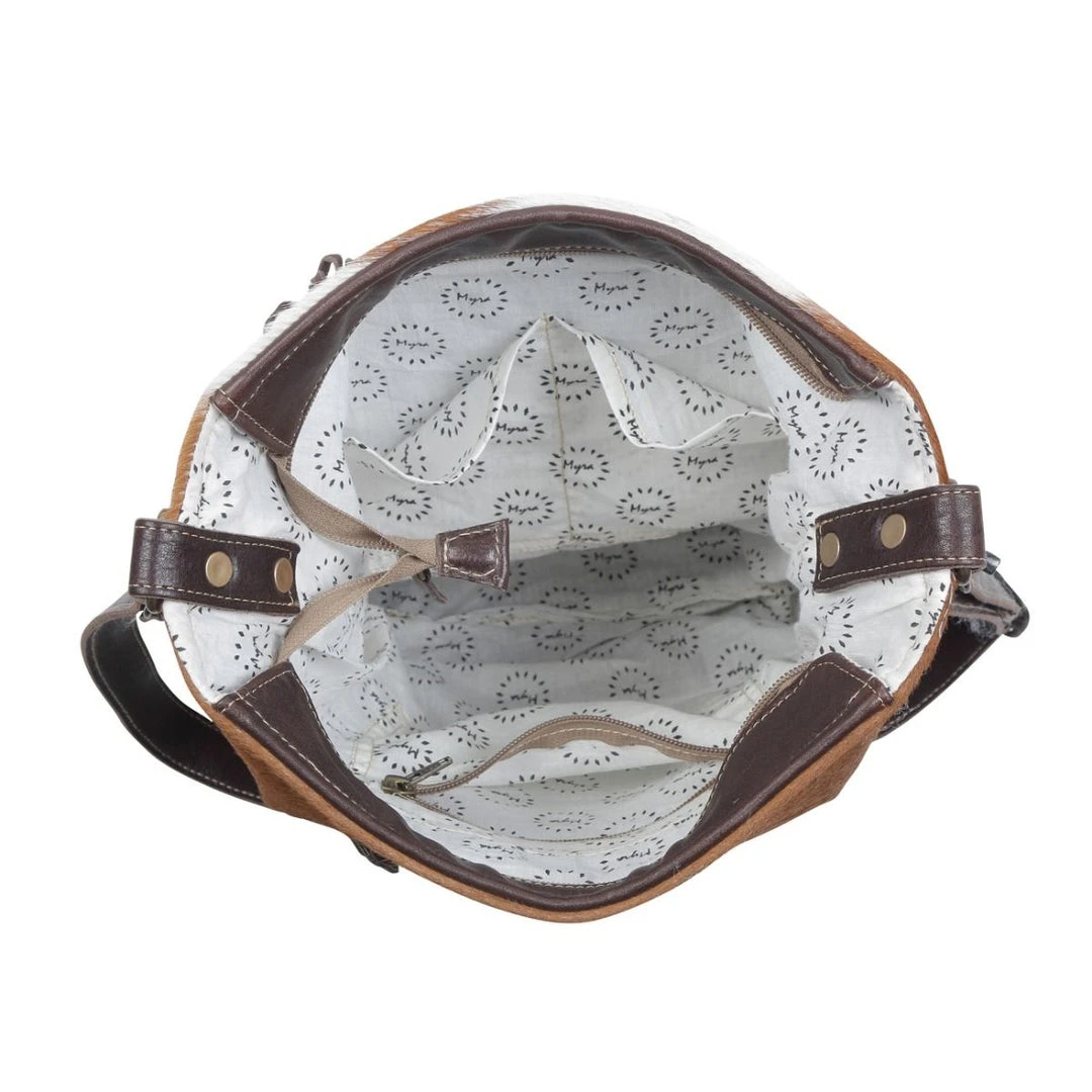 - Donβt miss out on our MEGA SALE! Grab your Myra Brown & White Splashes Cowhide Handbag today at an unbeatable price. Limited stock available β order now!