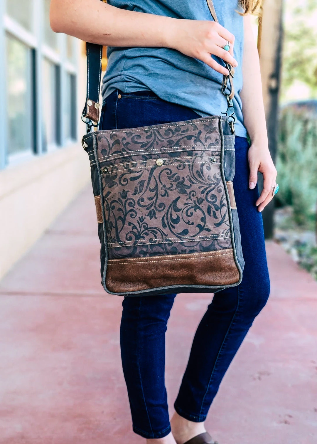 - Elevate your style with the Myra Dark Vintage Floral Crossbody Handbag. Featuring a unique vintage floral design, this handbag is both stylish and practical for everyday use.