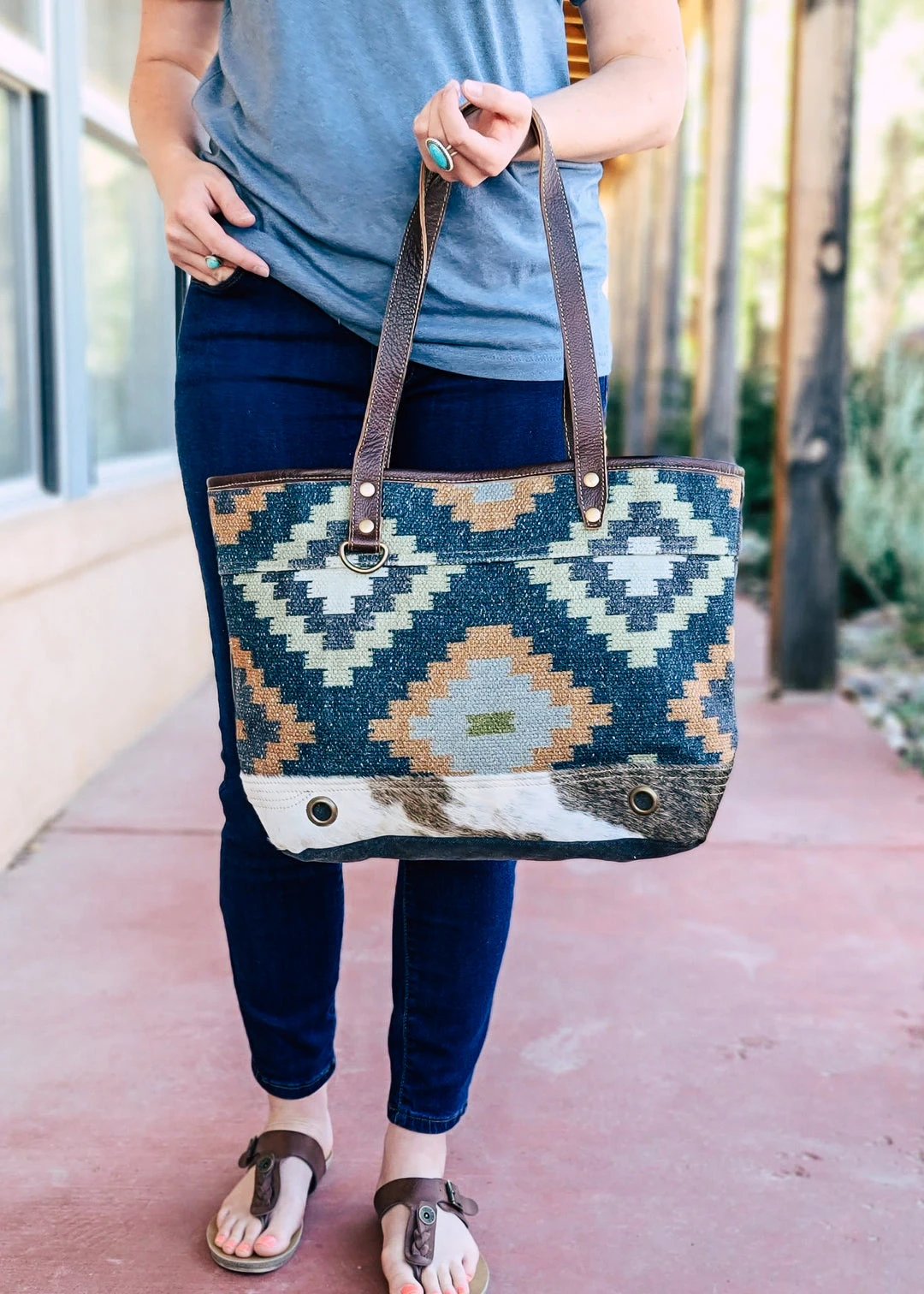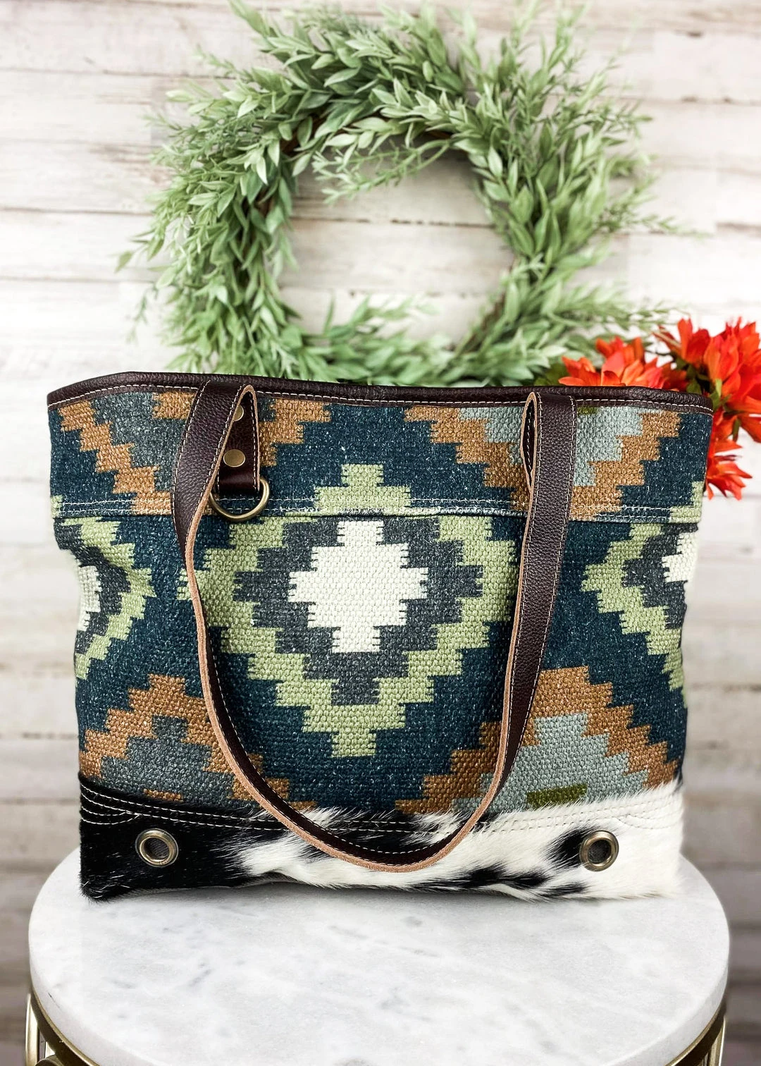 - Available in a variety of colors, the Myra Geometrical Aztec Tote Handbag offers versatile options to match your personal style.