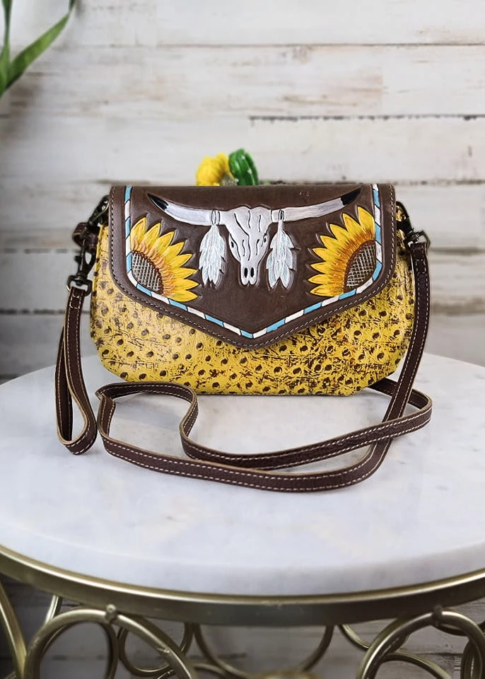- The Myra Yellow Steer Skull Wallet Crossbody combines style and functionality, featuring a unique steer skull design and vibrant yellow color.