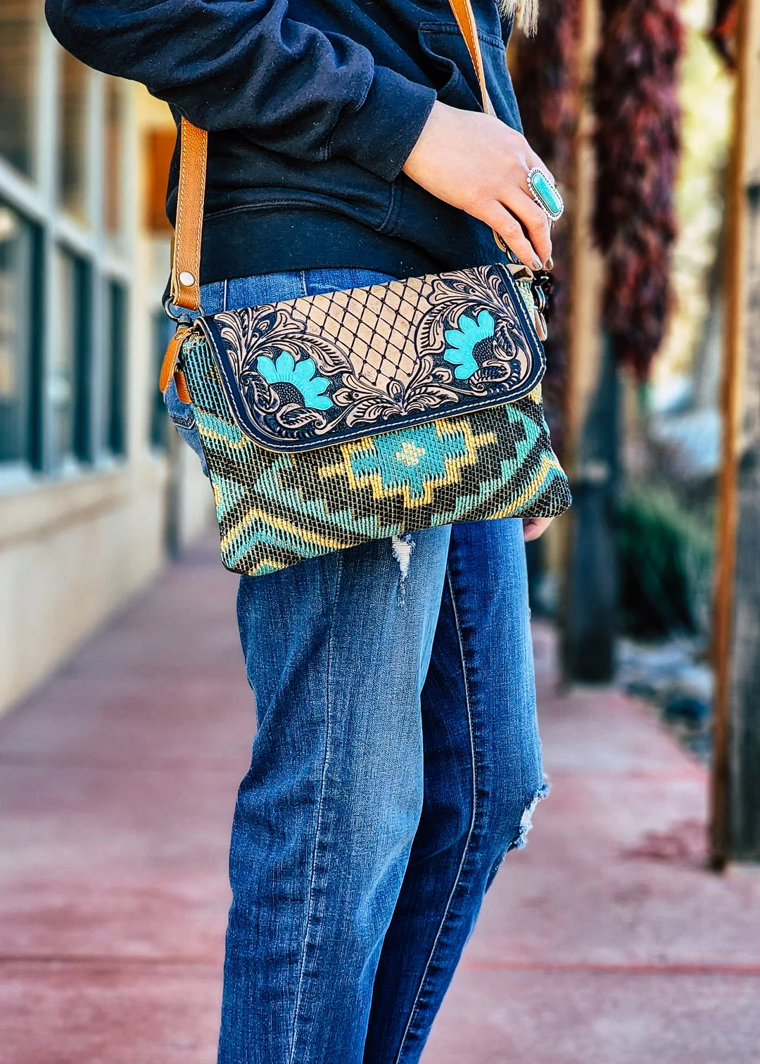 - Enjoy hassle-free shopping with secure payment options and fast, reliable logistics. Order your Myra Ivy Teal Aztec Crossbody Handbag today and experience style and functionality in one!