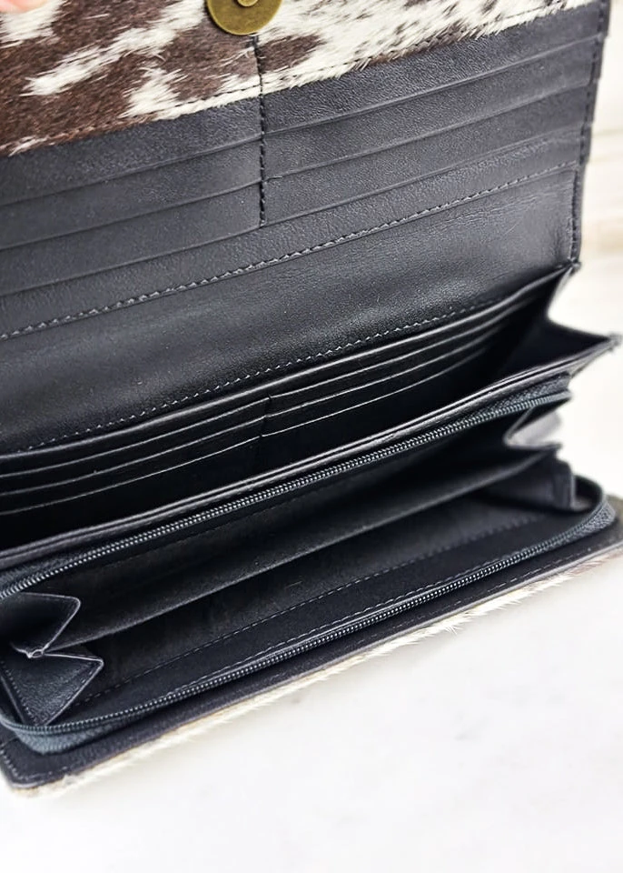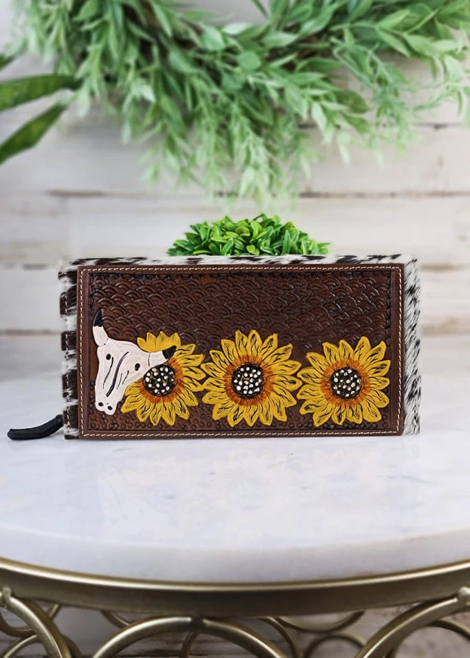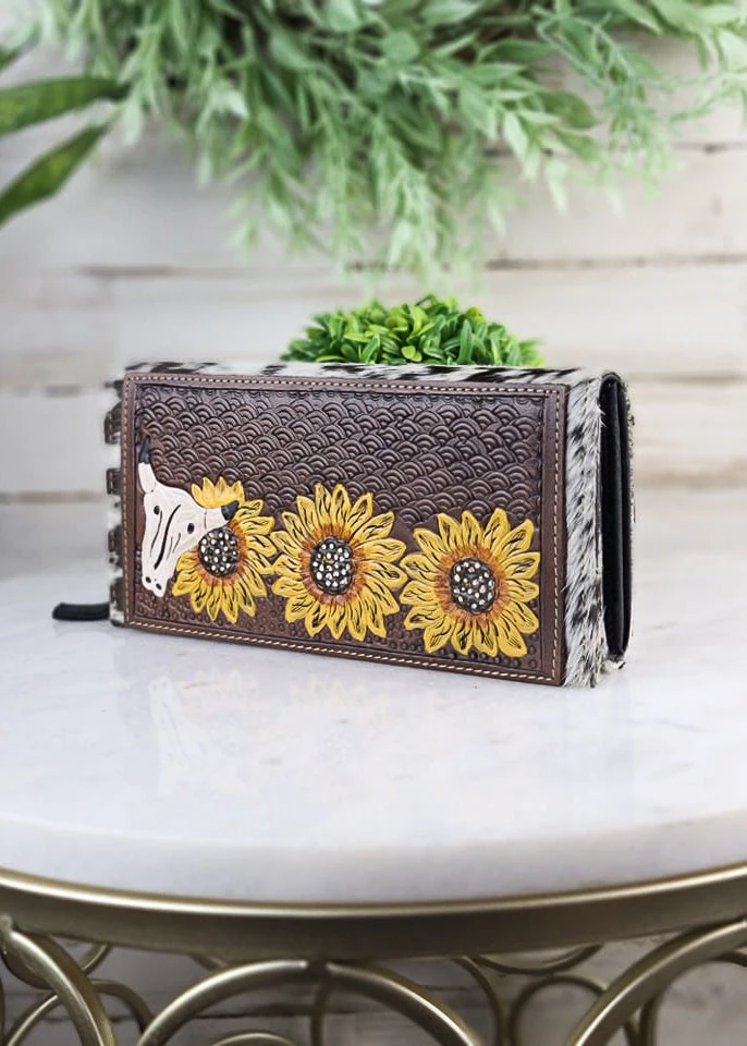 - Crafted from high-quality cowhide leather, the Myra Miley Tooled Wallet offers durability and a sleek, sophisticated look.