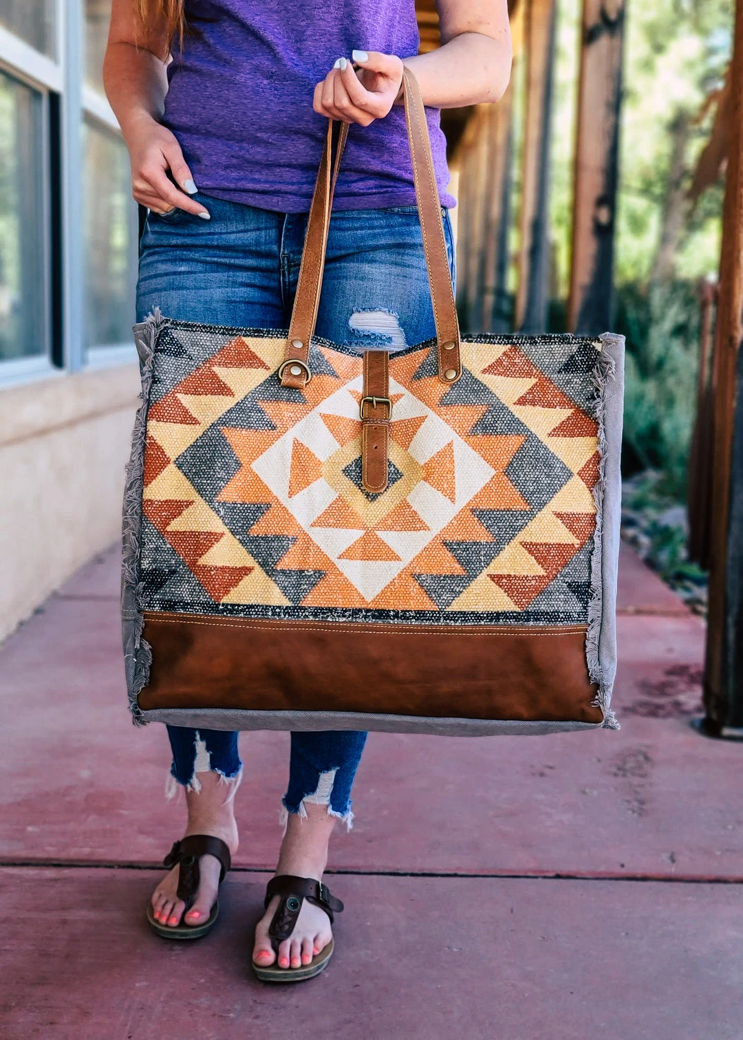 Pack your new beautiful, breath taking Multi-Colored Rug Weekender Handbag and hit the road to your favorite city for the weekend! Don’t worry about leaving anything behind, everything you’ll need will fit in this beauty!Â