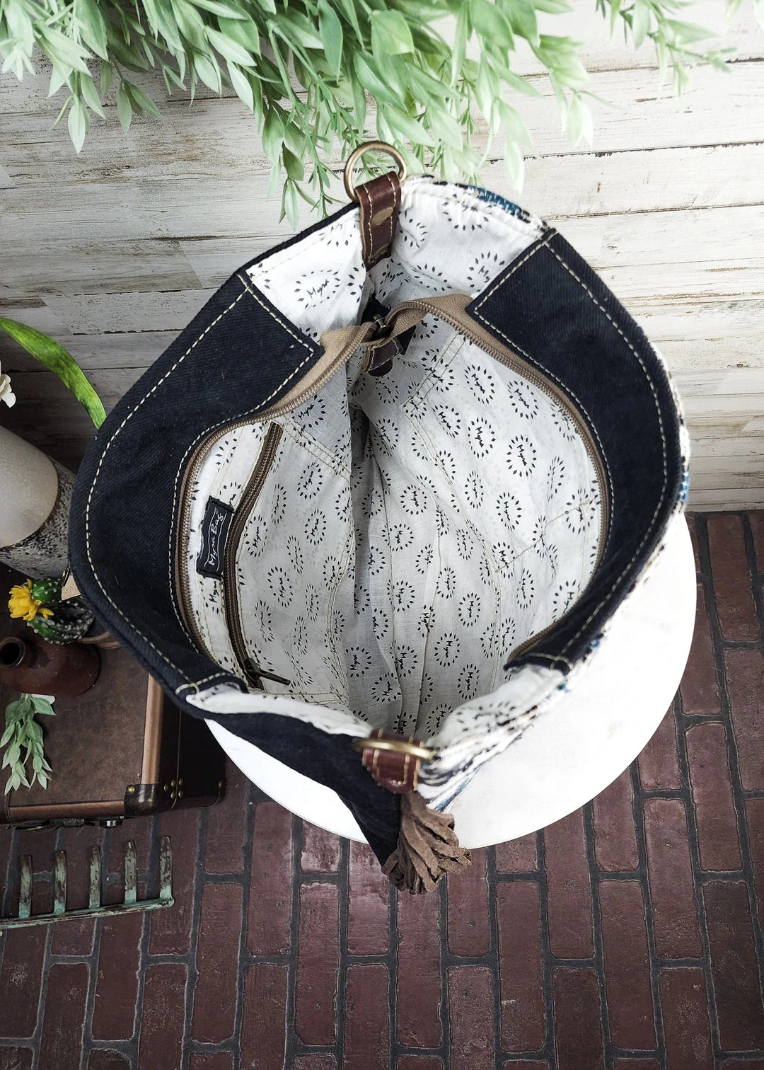 - Available in a stunning blue color, the Myra Oak Aztec Fringe Handbag is versatile and complements a wide range of styles. Perfect for casual outings, travel, or special events.