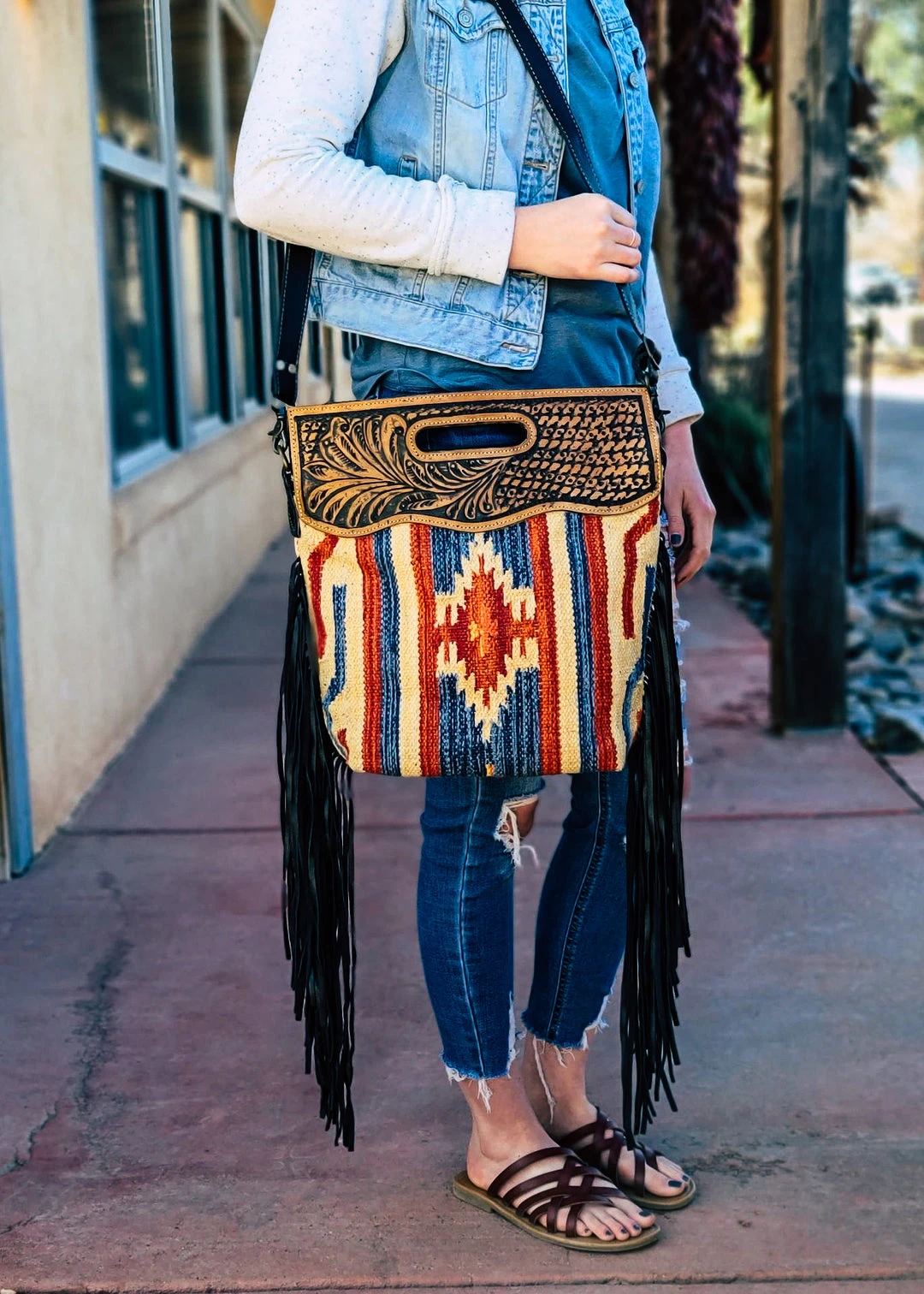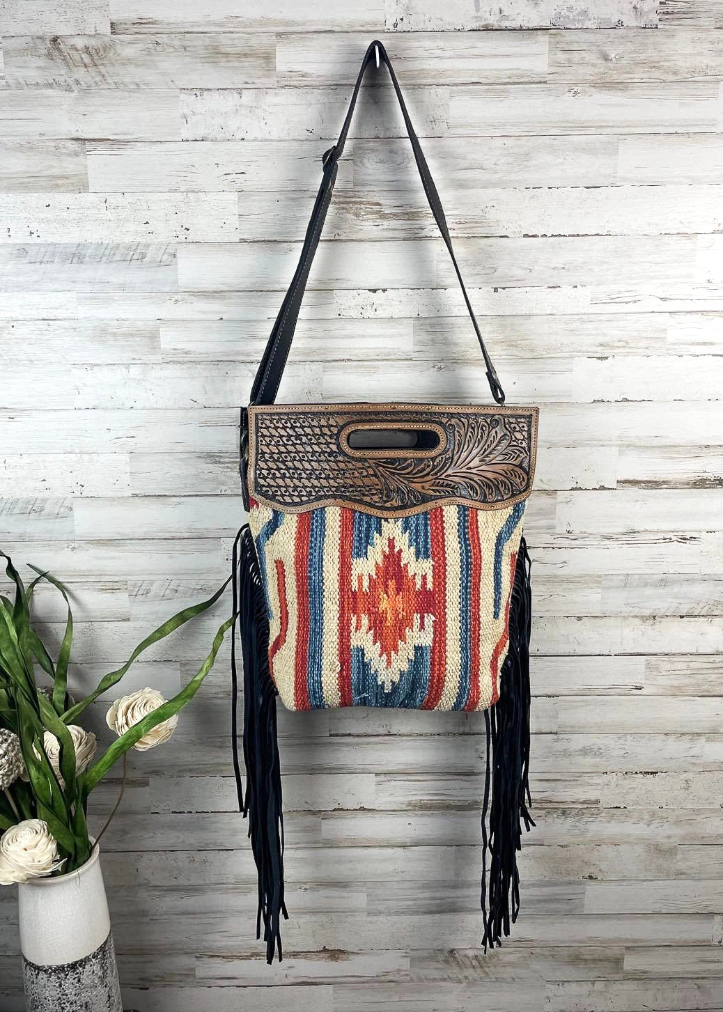 - Crafted from high-quality materials, the Myra Rustic Tinge Fringe Crossbody Handbag is built to last. Its unique design and attention to detail make it a standout accessory in your wardrobe.