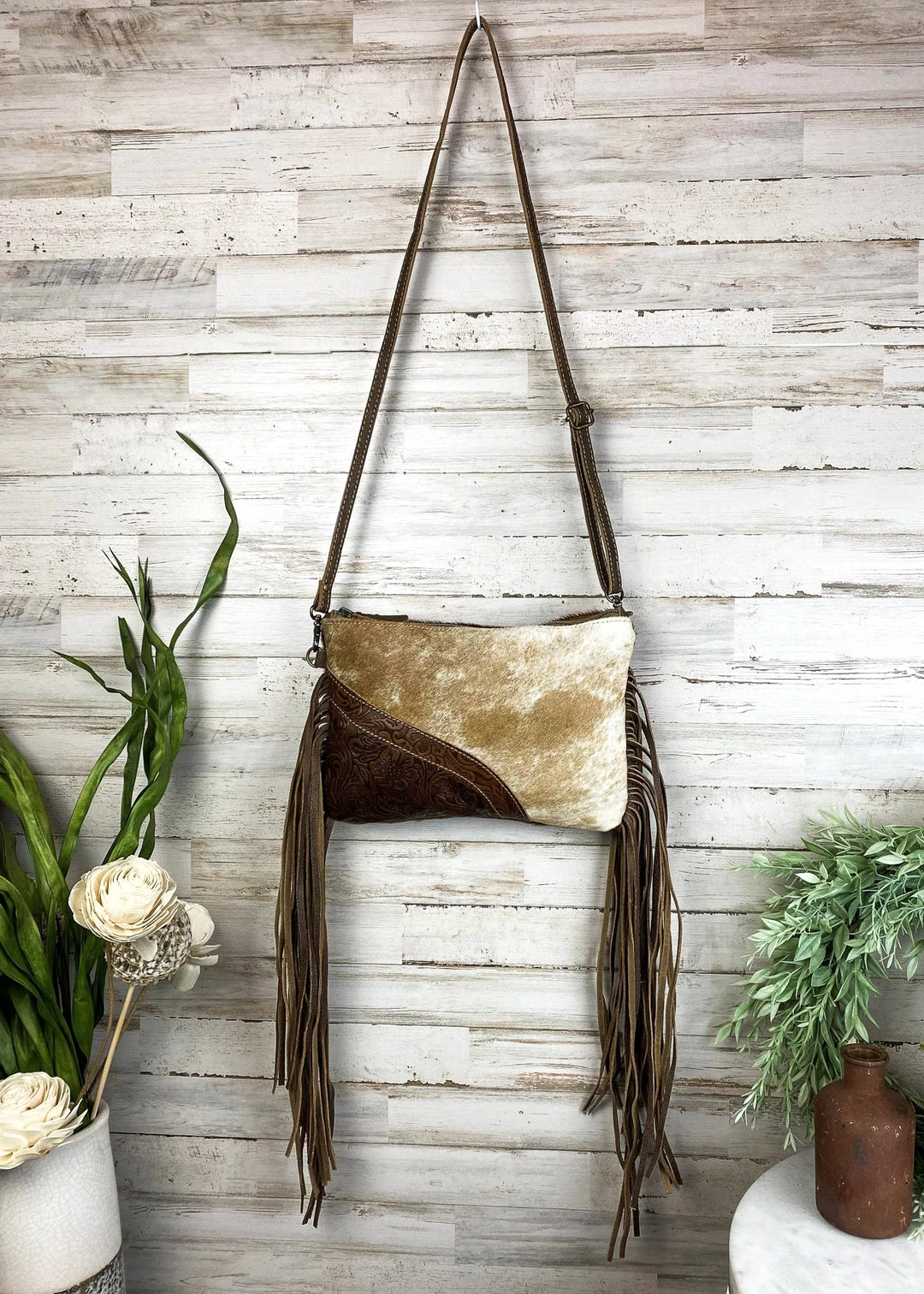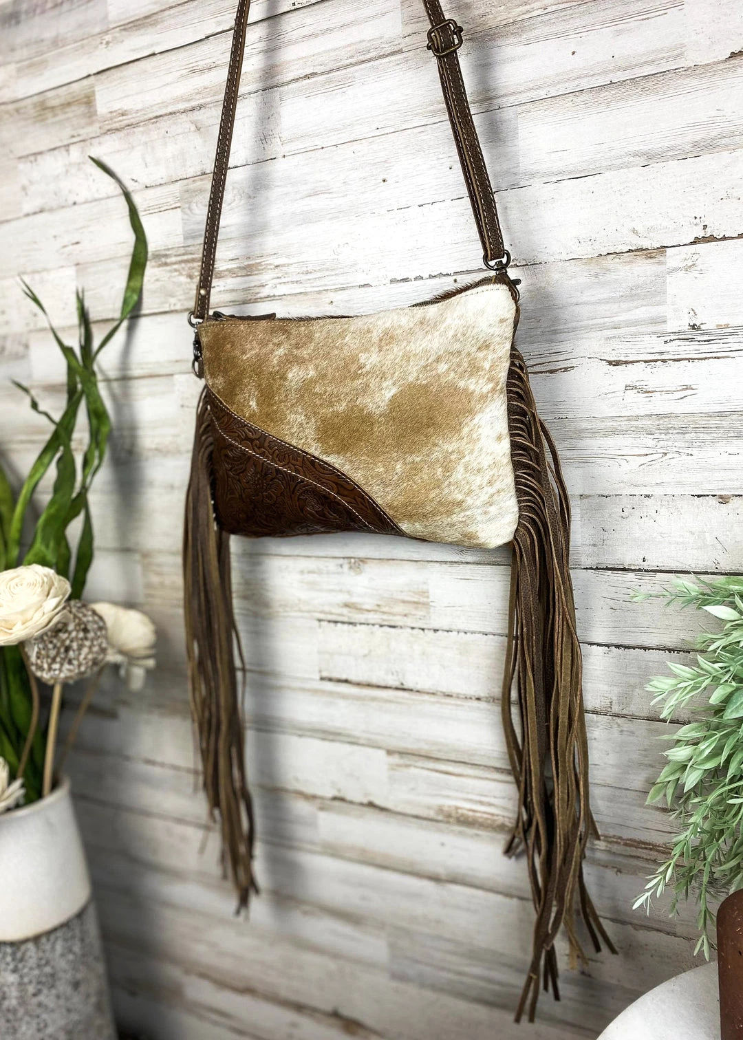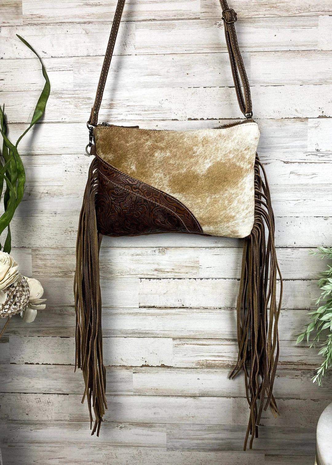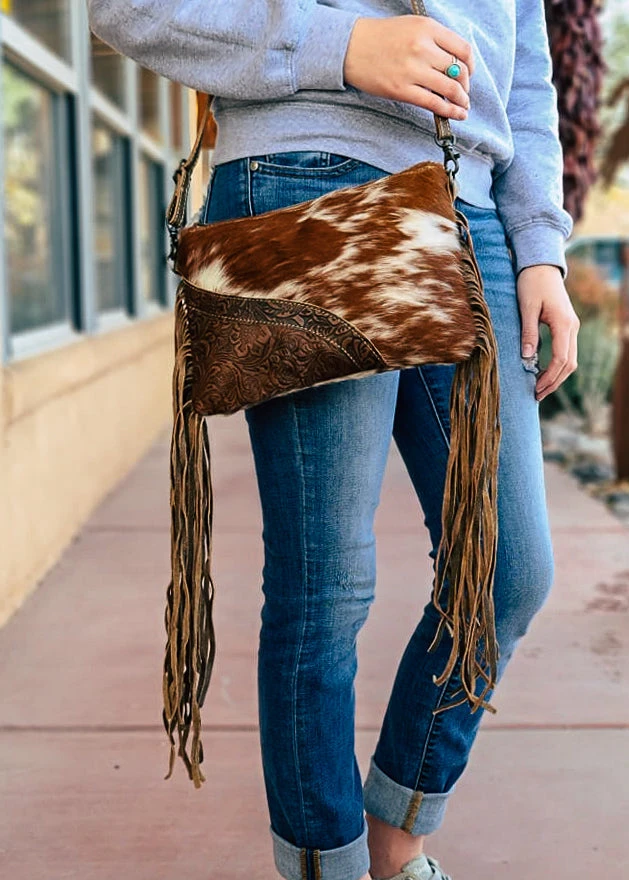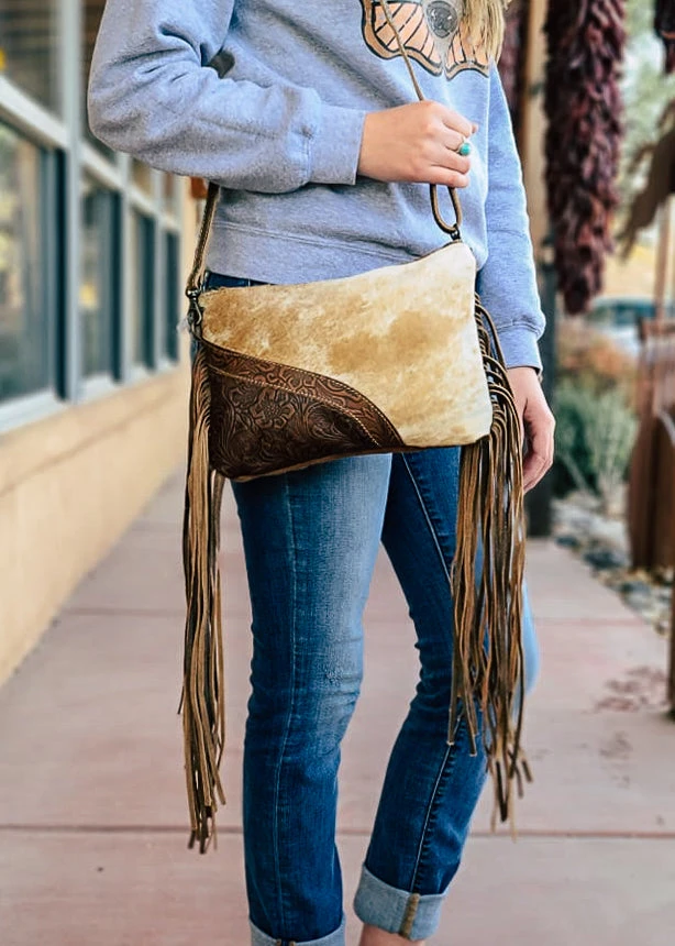 - Crafted from premium cowhide leather, the Myra Crossbody Bag combines durability with timeless elegance. The intricate floral tooling adds a unique artistic touch.